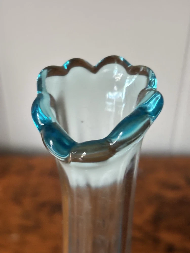$ 10.56VTG Mid Century Blue Handkerchief Folded Vase Bowl on Pedestal 10 Inch 1970s