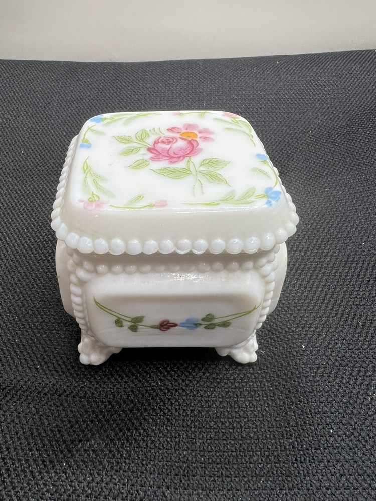 Trinket box is in excellent condition with no chips or cracks. Measurements are in photos. Selling as is, any questions feel free to send a message.