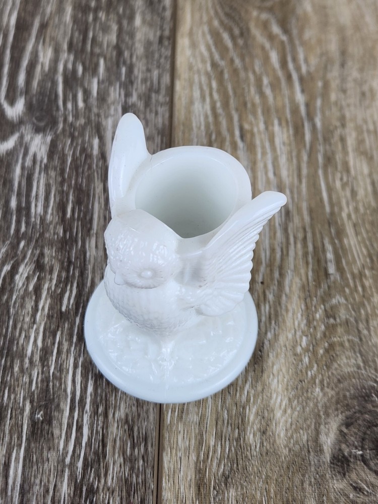 This charming Westmoreland milk glass owl toothpick holder is a classic piece of collectible vintage glassware. Featuring detailed feathers and a wise owl expression, it also works beautifully as a matchstick holder, miniature vase, or white owl figurine for rustic shelves or owl-themed decor. Crafted in classic white glass with intricate molded details, this piece is perfect for collectors of Westmoreland glass, milk glass animals, or lovers of unique decor. A thoughtful gift for lovers of vintage kitchenware, cottagecore accents, or owl collectibles. *It does have a few marks on it. No chips or cracks.