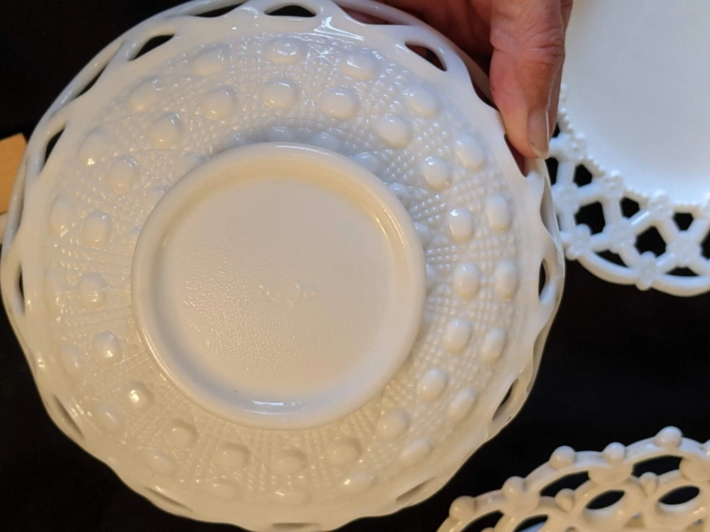 Crafted with precision, this set of three Westmoreland milk glass dishes exudes a timeless charm that complements any decor. Each piece, measuring 7", 9.5", and 6.5" in diameter, showcases the classic elegance of round, white milk glass, reflecting a production style that has been cherished for generations. The dishes are a testament to the craftsmanship of the renowned Westmoreland brand, known for its quality and design. Thank you for looking!
