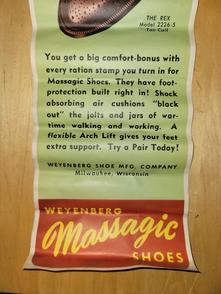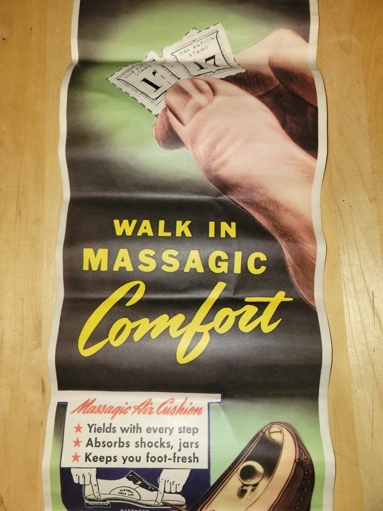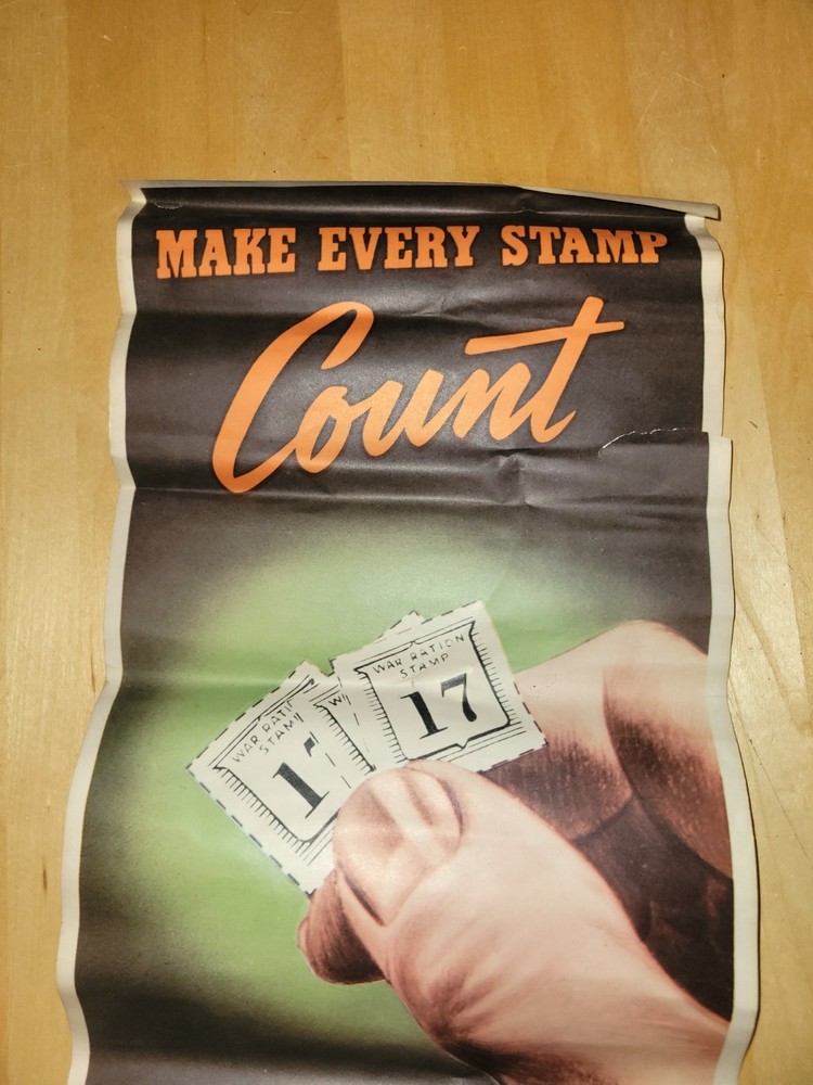 I have 2 of these vintage store posters. Both are the same size. This one has one tear on the top right by the T in count. Has slight wear to the outer edges also. On the side of that, this is a rare beauty that you'll probably never see again. I have never seen another like these. This will be shipped rolled and well protected.