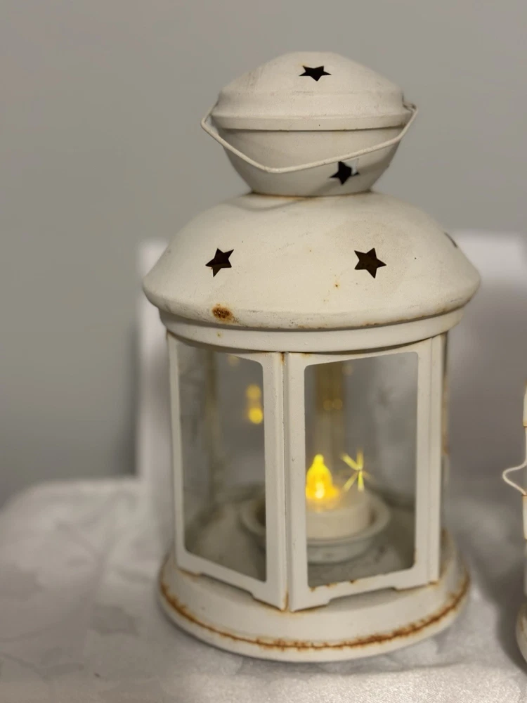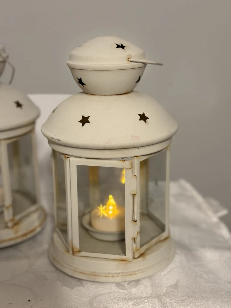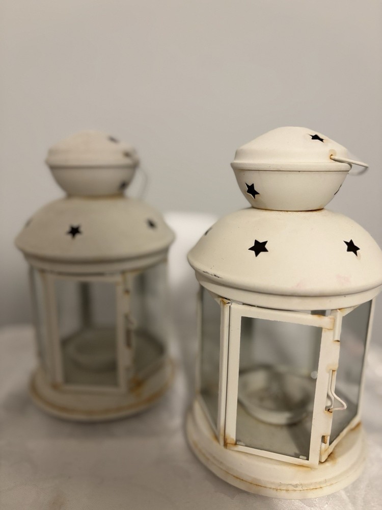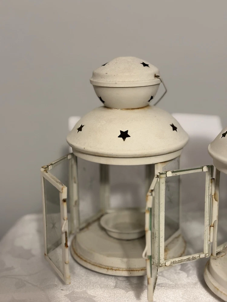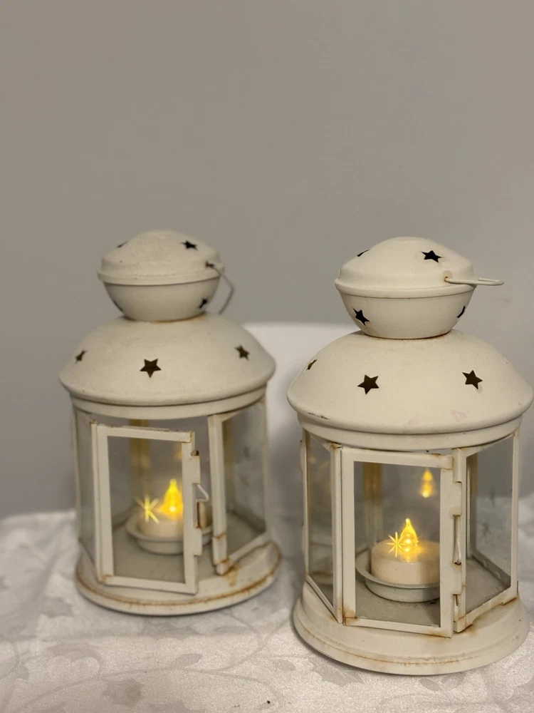This White Colonial Lantern Candle Light Pair from the brand Colonial Candle is a charming addition to any room. The octagonal shape, distressed finish, and rustic pattern give it a historic and vintage look. Can use real wax or LED candle, these medium-sized candle holders are suitable for windows, walls, and furniture. In or outside entertainment. The white color and country style make them versatile for all occasions, while the easy-care instructions ensure low maintenance. Hinged open for easy care of candle. Perfect for adding a touch of ambiance to any space, these lanterns are sure to enhance the decor of your home. Returns accepted within 30 days; buyer pays return shipping