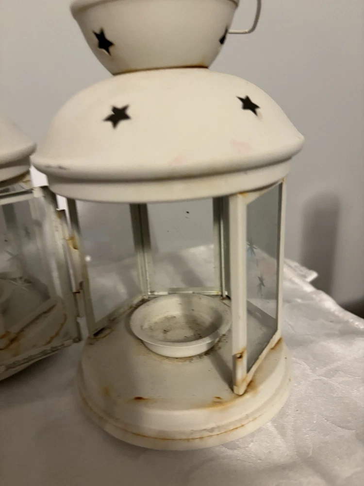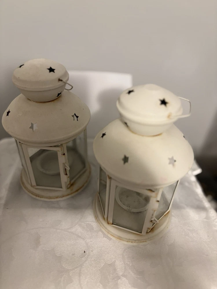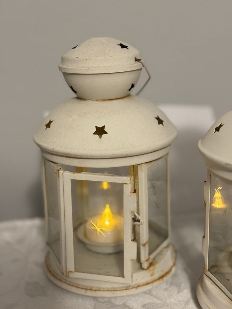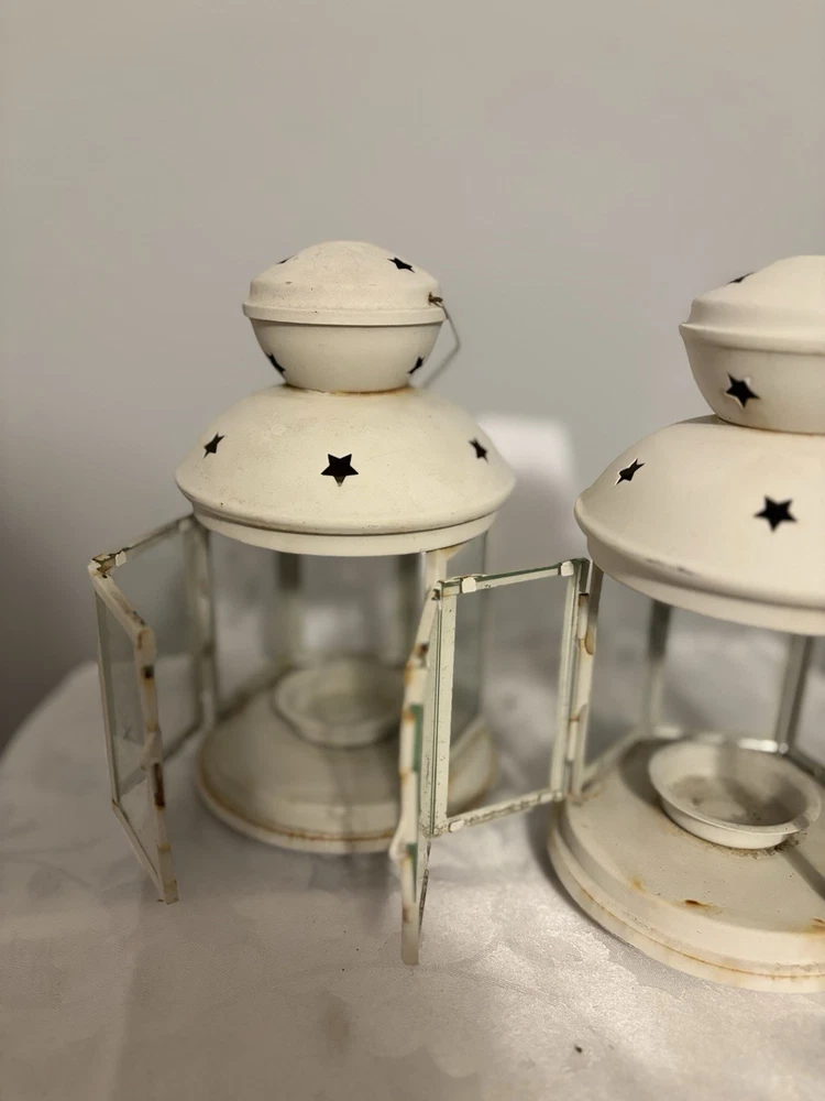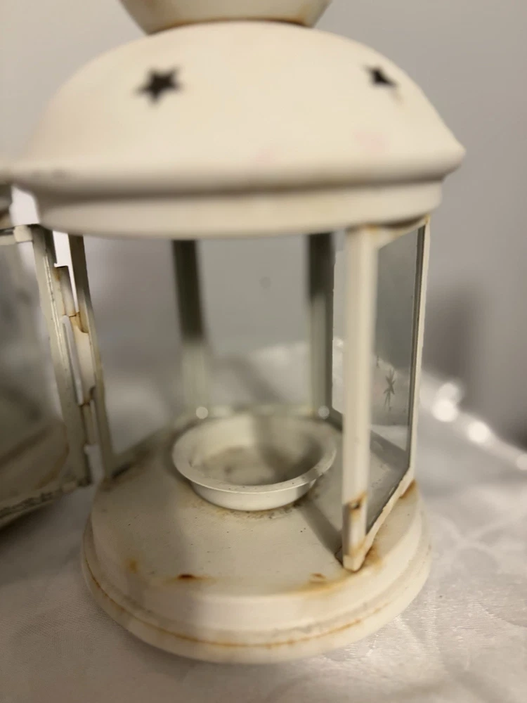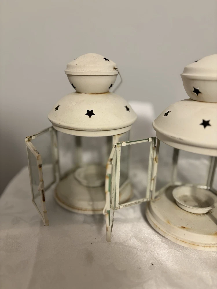 This White Colonial Lantern Candle Light Pair from the brand Colonial Candle is a charming addition to any room. The octagonal shape, distressed finish, and rustic pattern give it a historic and vintage look. Can use real wax or LED candle, these medium-sized candle holders are suitable for windows, walls, and furniture. In or outside entertainment. The white color and country style make them versatile for all occasions, while the easy-care instructions ensure low maintenance. Hinged open for easy care of candle. Perfect for adding a touch of ambiance to any space, these lanterns are sure to enhance the decor of your home. Returns accepted within 30 days; buyer pays return shipping