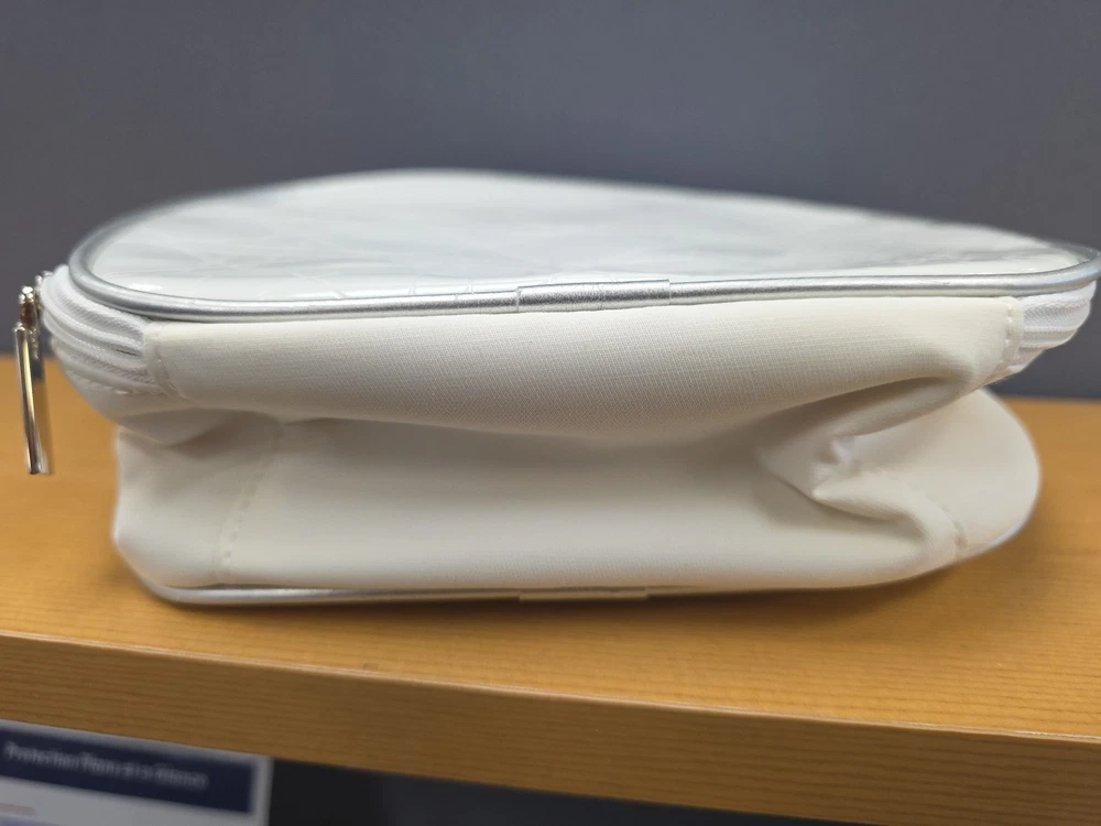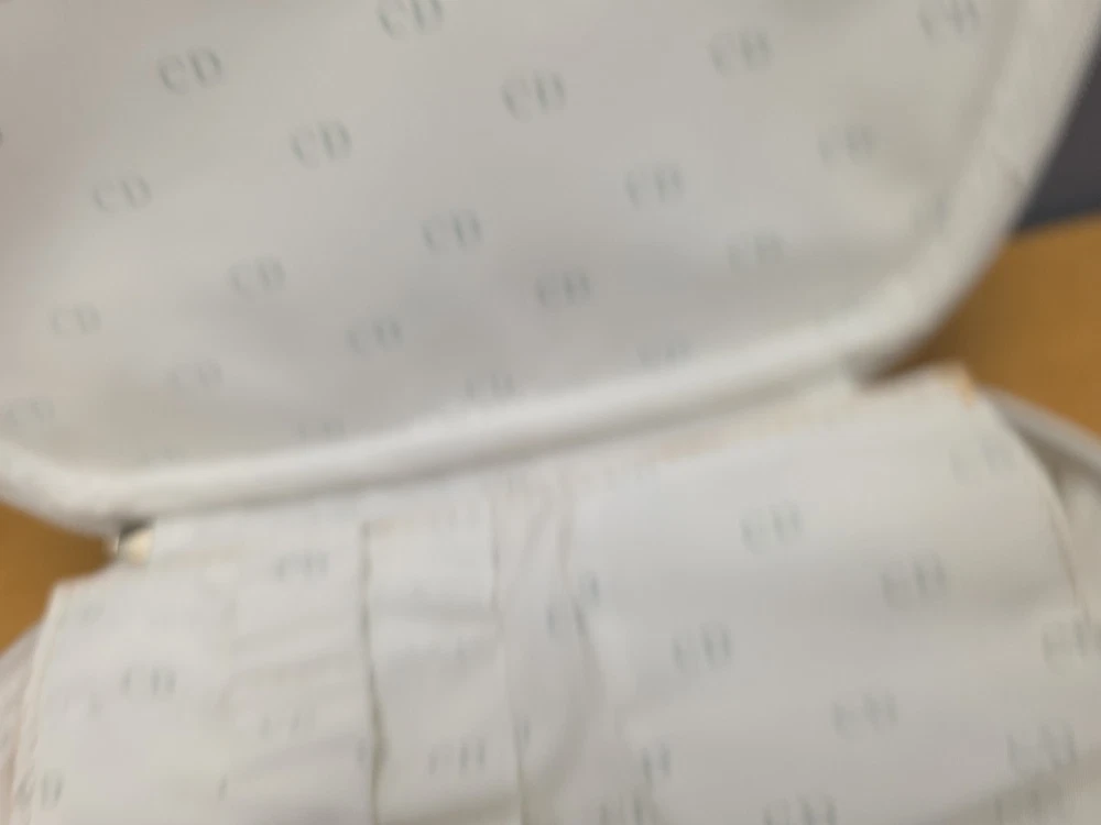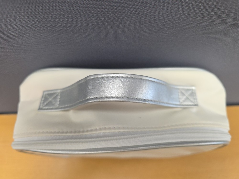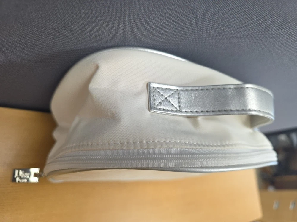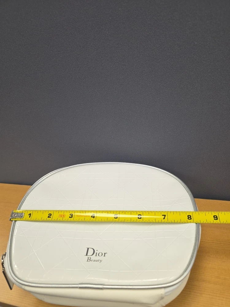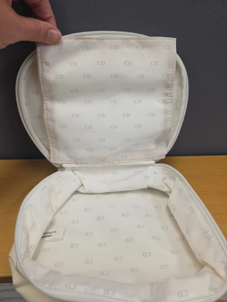 Vintage White Dior Beauty Makeup Bag/Cosmetic Pouch Travel Bag. There is a bit of discoloration on the top outside and the inside. Vintage used condition. Please examine pictures carefully prior to purchase and ask questions if you have any. : )