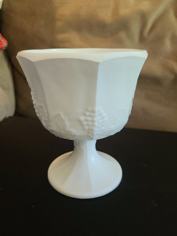 Vintage White Milk Glass Grape And Vine Footed Pedestal Candy Dish Bowl 6.25". This is in great pre-owned condition, no chips or cracks! 5.5" diameter.