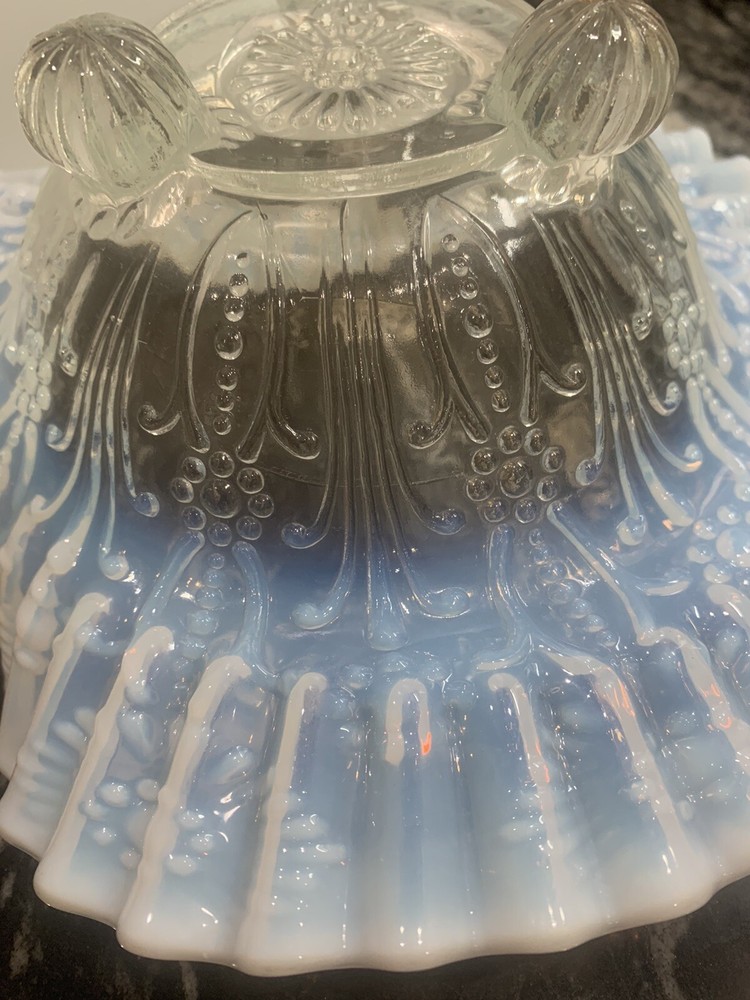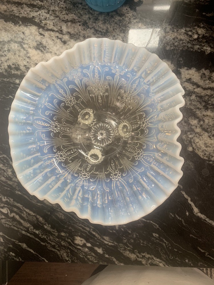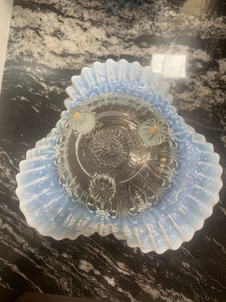 Material:GlassBrand:UnmarkedCountry/Region of Manufacture:United StatesTheme:FlowerFeatures:DecorativeHandmade:NoType:Footed DishColor:WhiteVintage:YesUPC:Does not applyPattern:FlowersType of Glass:Opalescent GlassSet Includes:Bowlgtin13:Does not applyGlassmaking Technique:Pressed