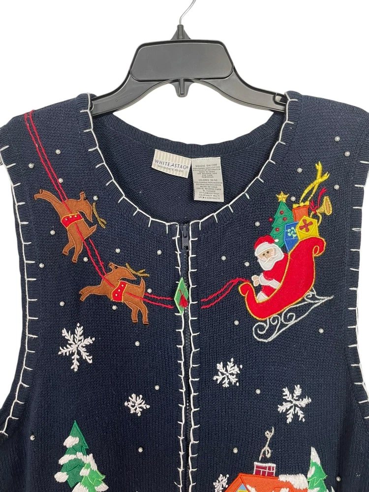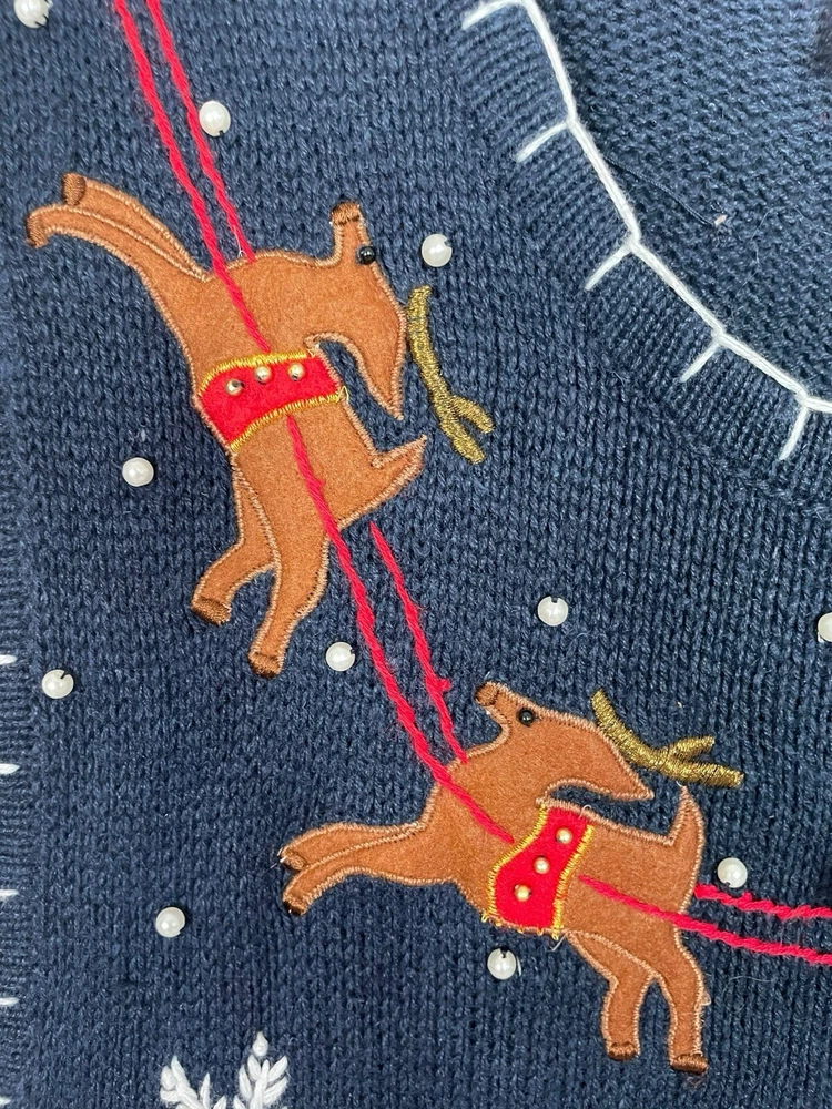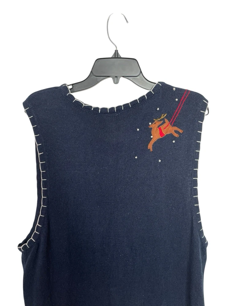 Good pre-owned condition. Just some light pilling. -Ramie & Cotton -Stretchy -Zipper closure. -Navy blue with multicolored accents. -Beaded with faux pearls. -Embroidery and felt accents Armpit to armpit- 22” Shoulder to hem- 29” *Colors may be slightly different than what appears due to different screens and lighting. Please look closely at pics. I do not ship out on Saturdays or Sundays. Let me know if you have any questions! Feel free to send offers:)