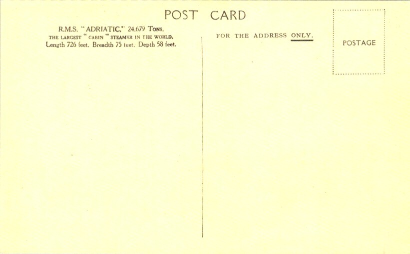 Vintage Postcard White Star Line Royal Mail Ship R.M.S. Adriatic in Port 15572