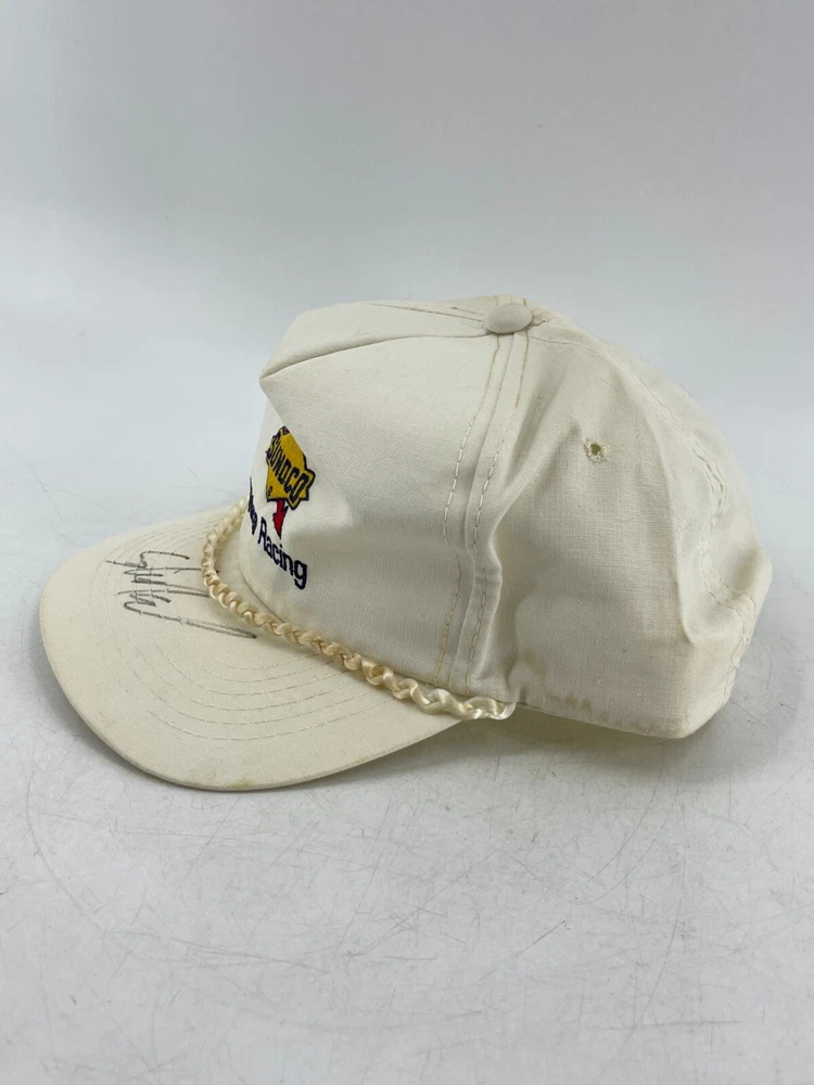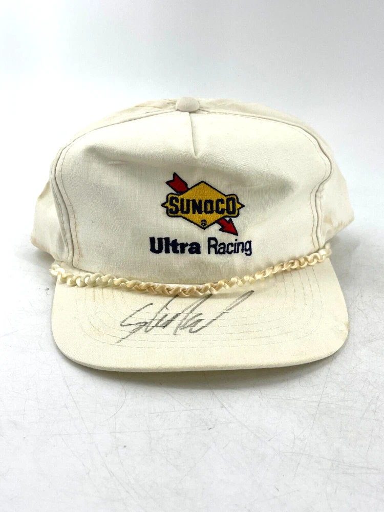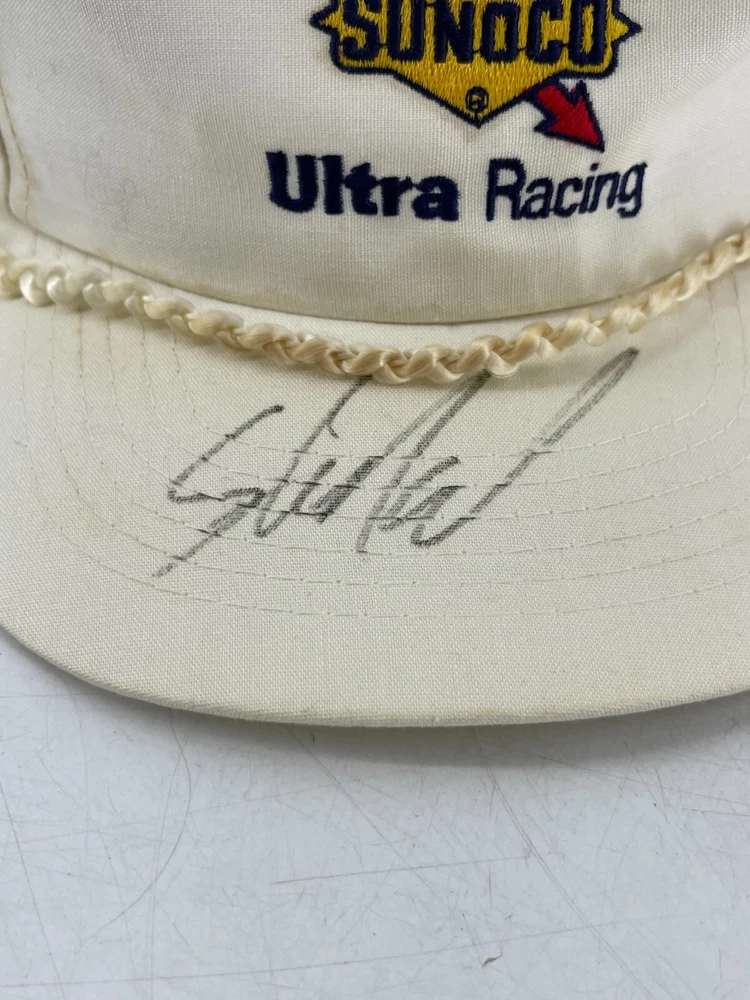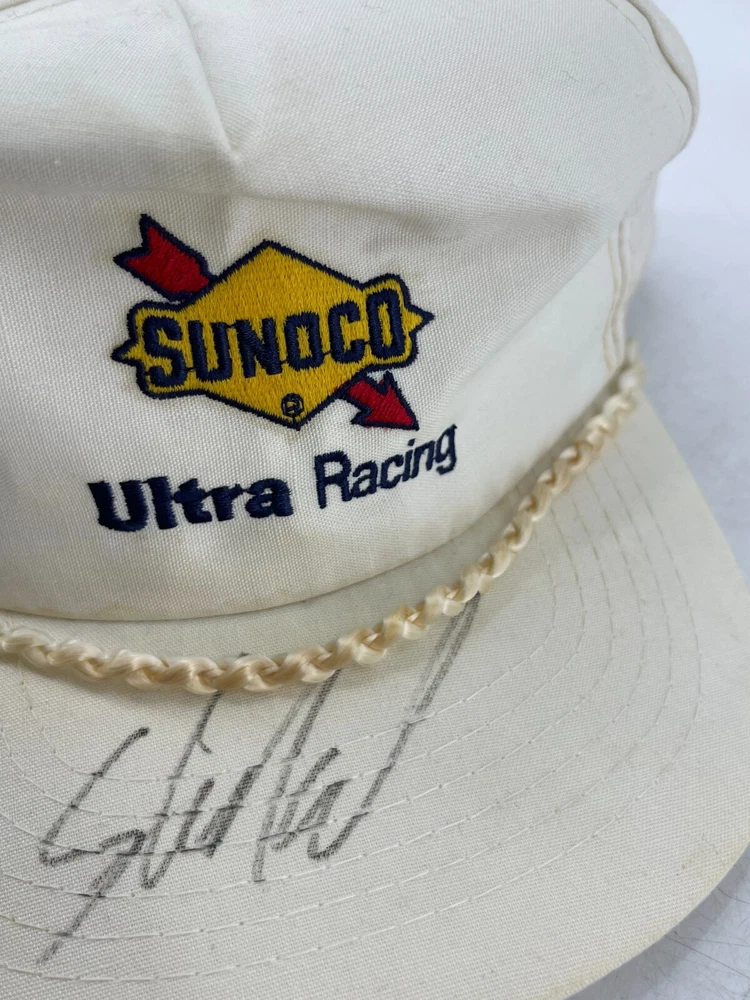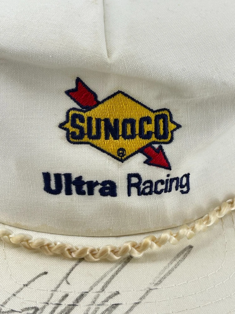 Vintage White Sunoco Ultra Racing Trucker Snapback Hat Signed Autograph Signed on top brim, but unsure who signature is from.