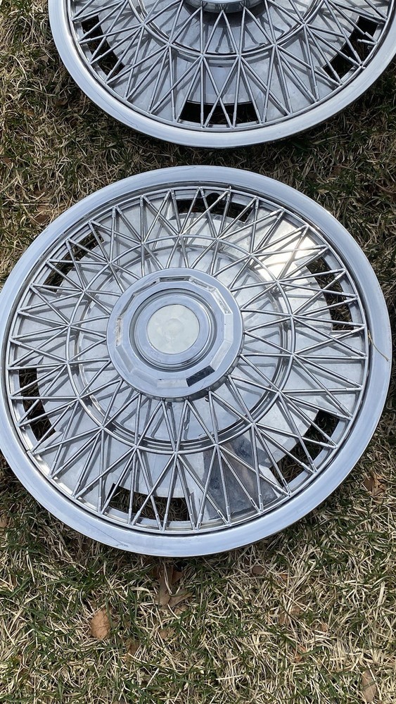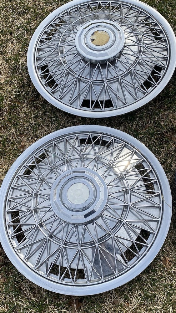Vintage 1970's Wire Spoke Hubcap Wheel Covers SET of 4 $$60 15 Inch really good condition vintage spoked hubcaps. Made of mostly plastic the mounts are metal. There is one or two damage spokes so please Check out the pics