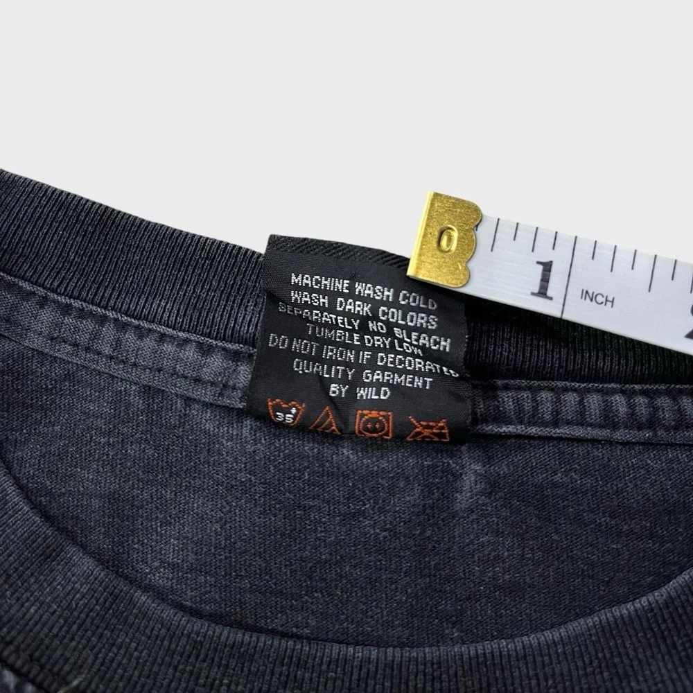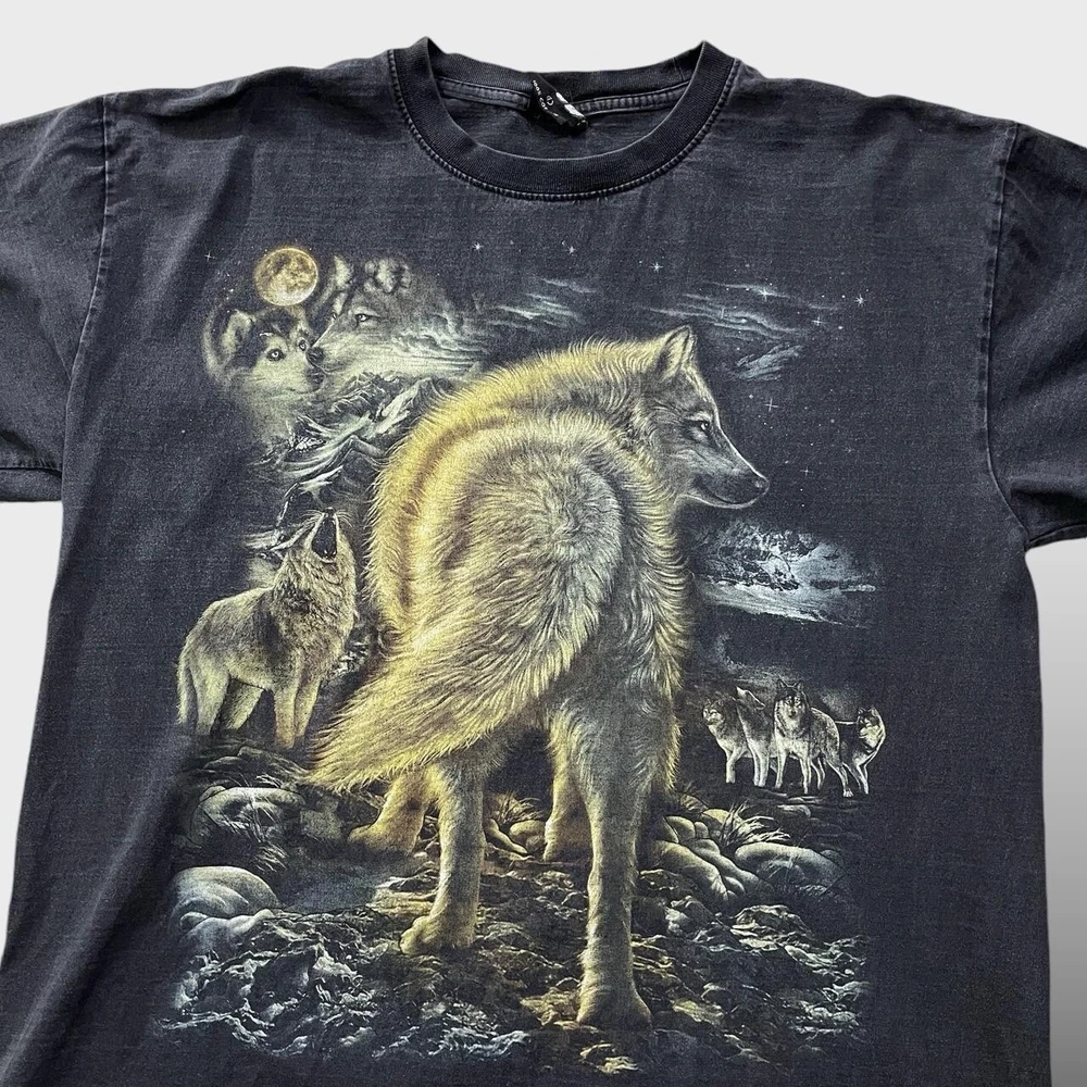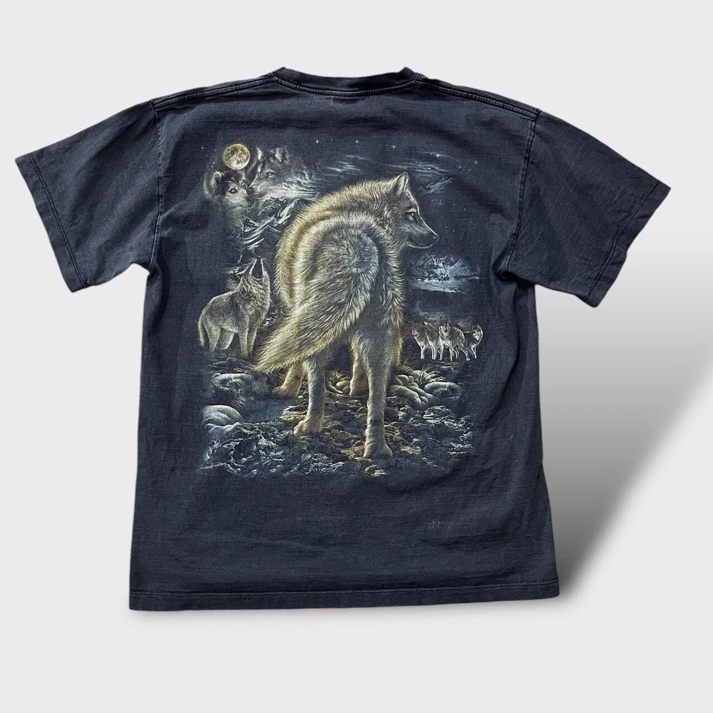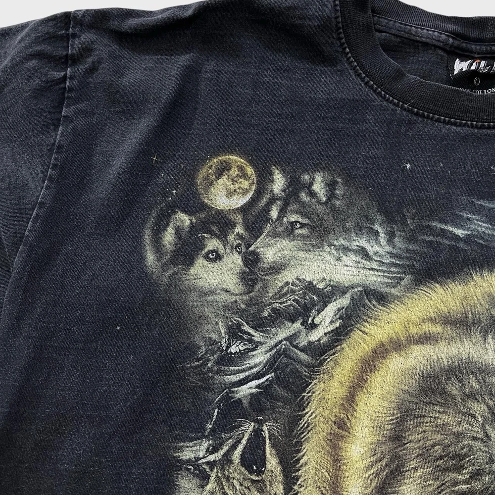 Vintage wolves graphic t shirt | faded washed black πŸ’‘ good condition- nice vintage sun/wash fade, no faults πŸ’‘ printed at front and back πŸ’‘ 100% cotton, decent weight, generally the WILD brand t shirts are good quality and don't bobble πŸ“ size L p2p 22" l27"