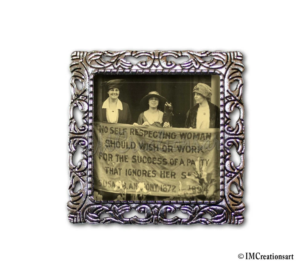 Vintage Woman Suffrage Design Handmade Square Glass BROOCH pin Jewelry