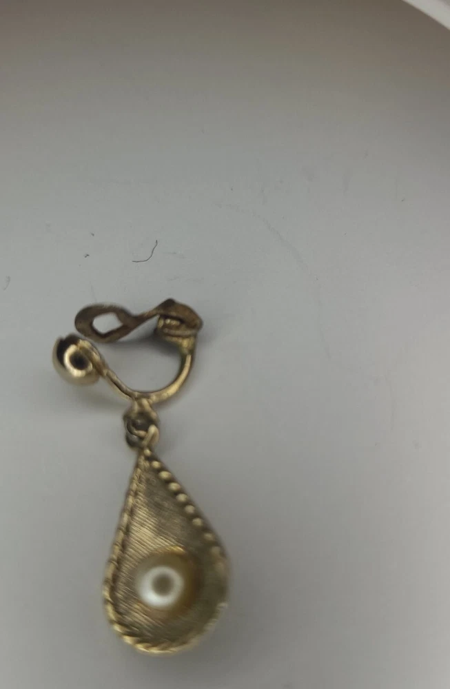 Vintage Women's 1 Earring Or Use As A Pendant Gold Tone faux pearl