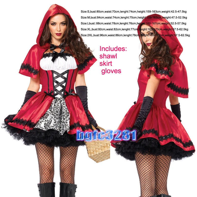 Vintage Womens Girls Little Red Riding hood Halloween Fairytale Costume S-2XL
