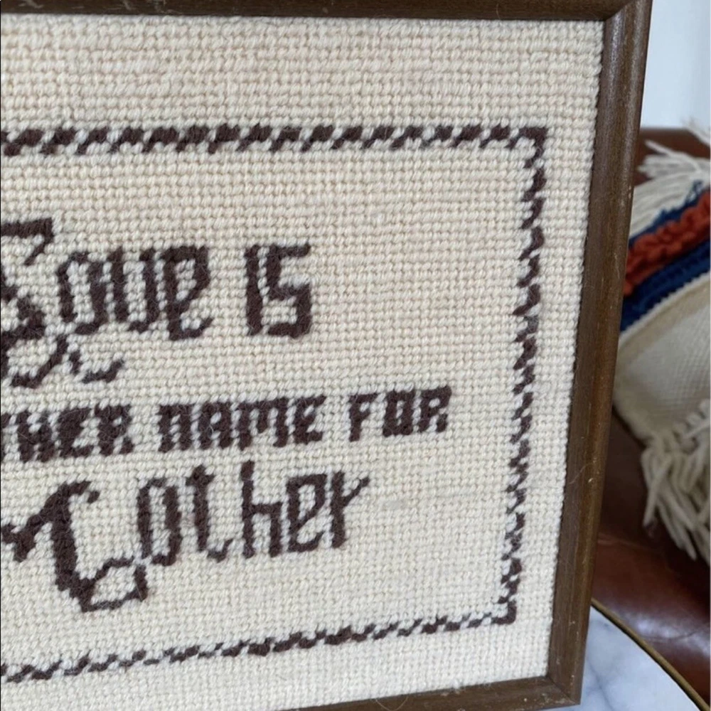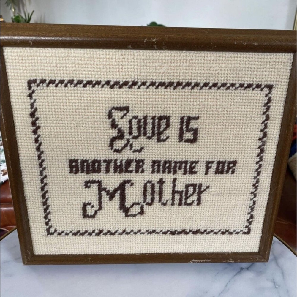 Vintage Wood Framed Needlepoint Love Is A Mother Great vintage piece! Excellent craftsmanship. Age appropriate signs of wear to frame. Overall good vintage condition. Cream and brown. Item comes from smoke free and pet free home Approx dimensions 11” x 9.5” Vintage Gift Mom Mother’s Day Crewel Needlepoint Art Wall Art Boho Mcm Mid century Farmhouse Frame