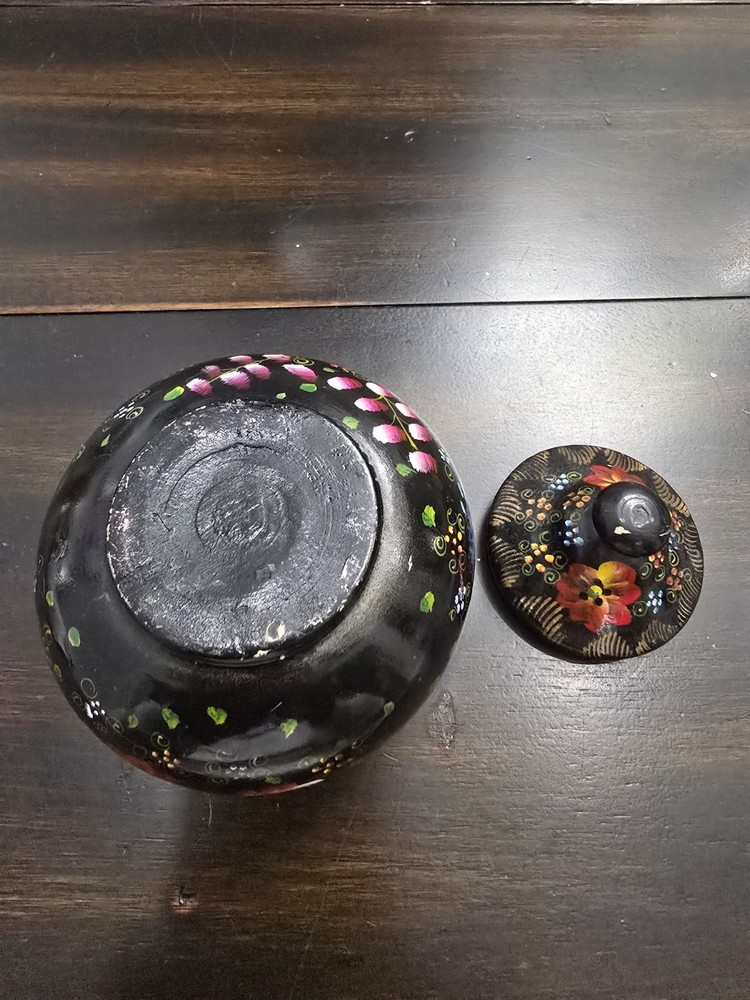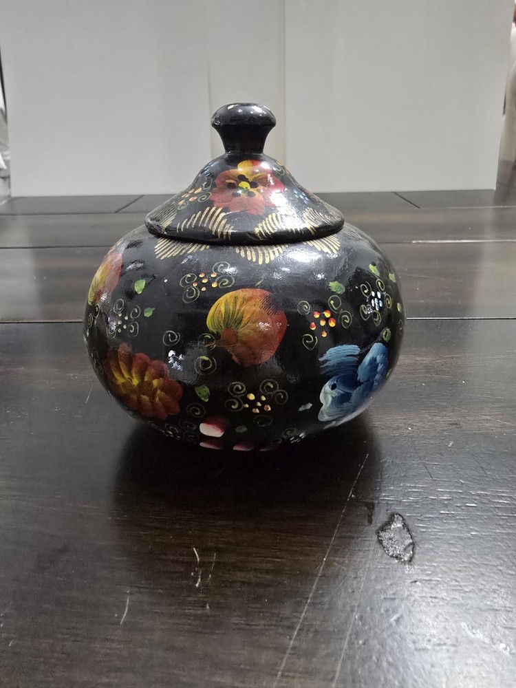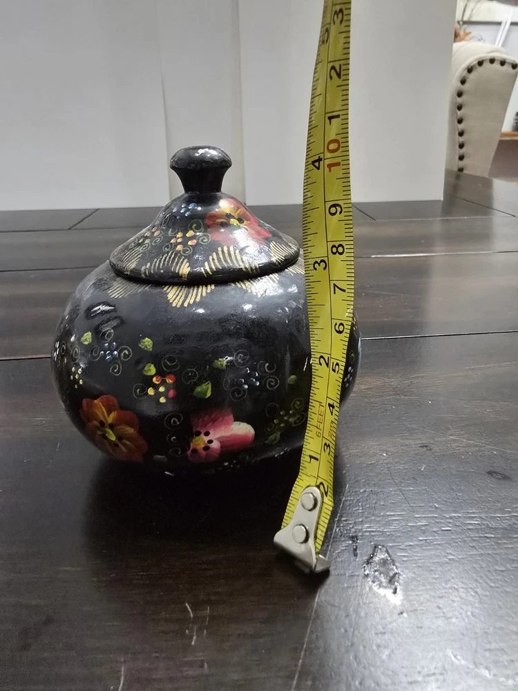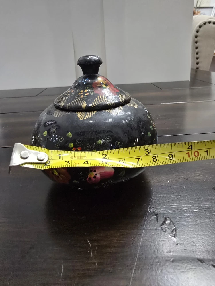 Country of Origin: Unknown Handmade: Yes Department: Adults Finish: Painted Collection: Keepsake Boxes Material: Wood Subject: Boxing Features: Boxed Engraved: No Customized: No Type: Box Brand: Wooden Care Instructions: Clean with Damp Cloth Color: Blue Room: Any Room Era: Late 20th Century (1970-1999) Occasion: All Occasions Original/Reproduction: Original Shape: Round