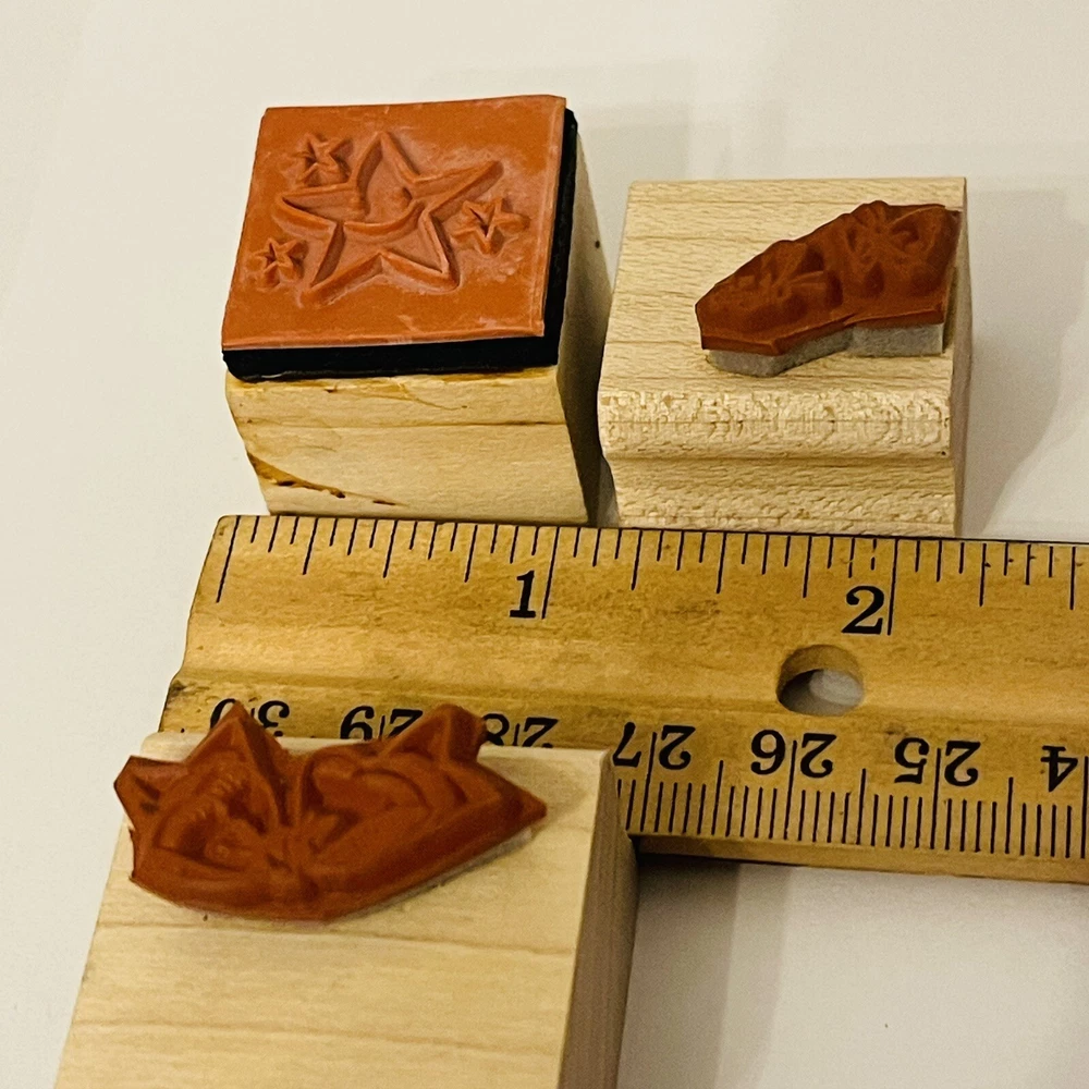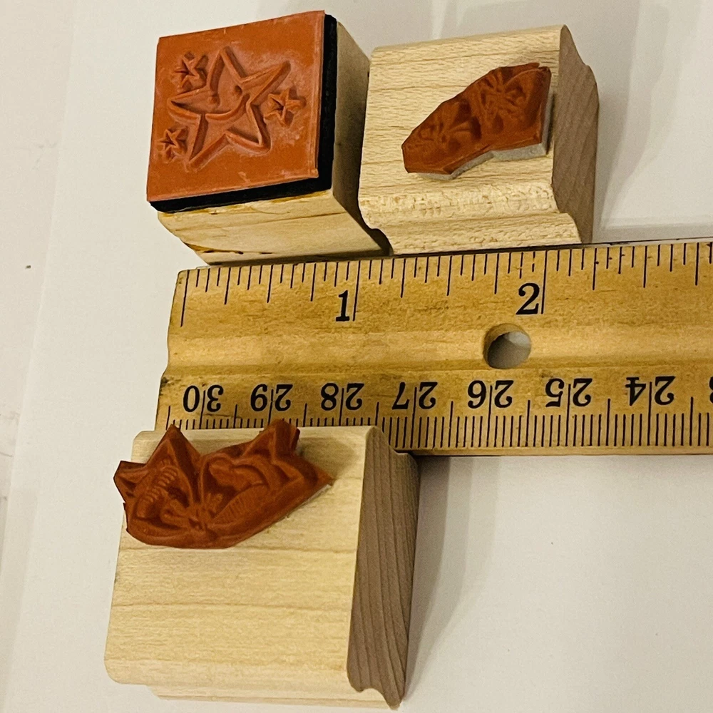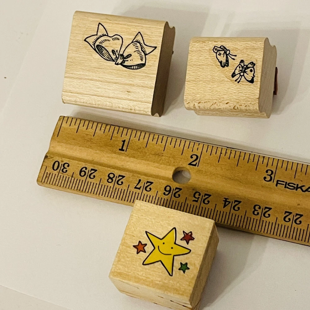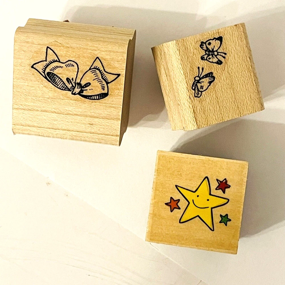 Vintage Wood Mount Rubber Stamps Lot - Baby Buggy, Bows, Butterflies, Stars - Scrapbook Shower Decor