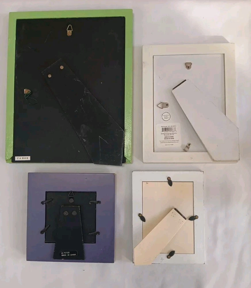 Frames beautifully complement each other perfectly. Please check out my other frame bundles. Green wood frame has a beautiful distressed style 5x7 photo. Square purple wood frame holds a 3x3 photo. White distressed wood frame holds a 3x5 photo. Yellow foral wood frame with orange poppies 5x7 photo Please see the photos for more details.