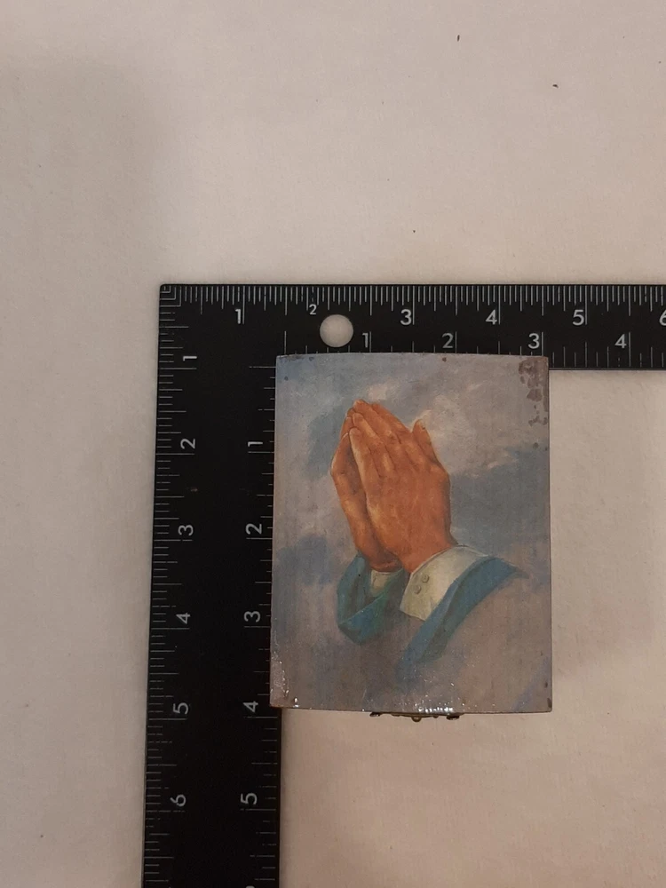 Vintage Wood Trinket Jewelry Wood Toned Praying Hands Friendly Home Parties In good pre-owned condition may show signs of wear from use/handling/storage/display. Please view all pics for condition/details/flaws/issues. SOLD AS IS There is/maybe marks/spots/dirt/debris please see photos 1-24, there is/maybe paint loss/sticker loss please see photos 1-24, there is lite discoloration please see photos 1-24, there are surface scratches to item please see photos 1-24, please see all photos for condition/issues/details. III