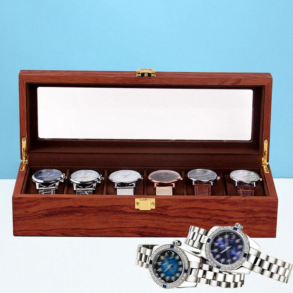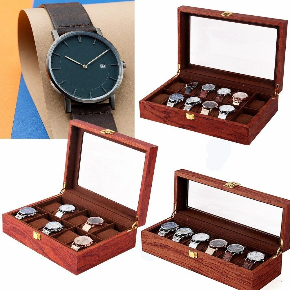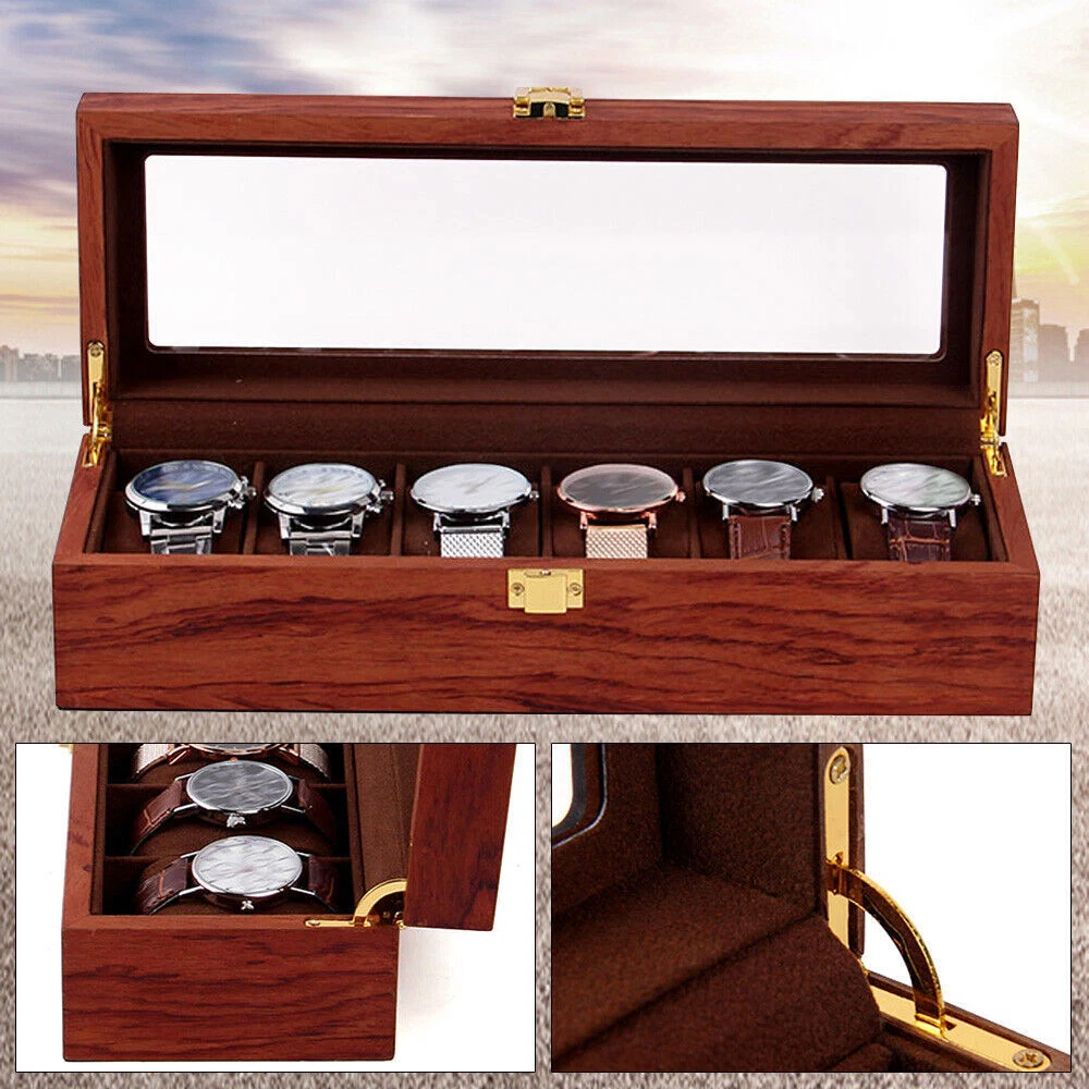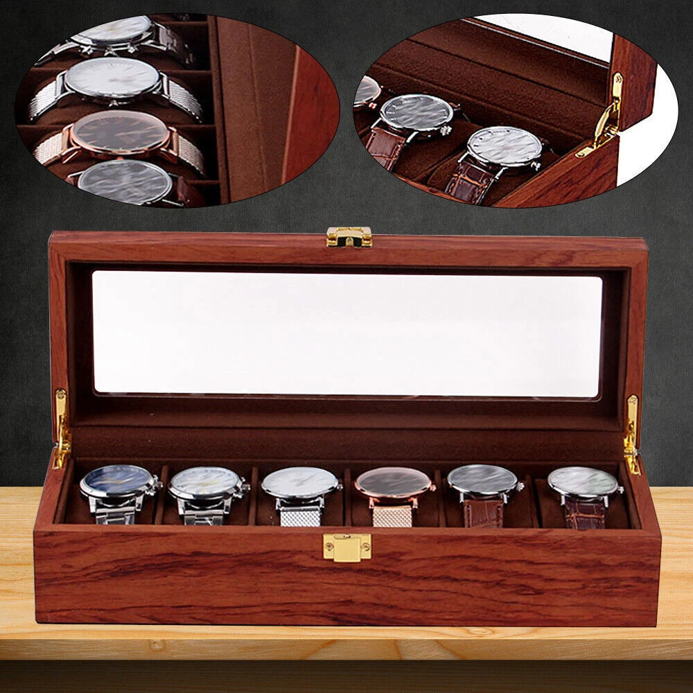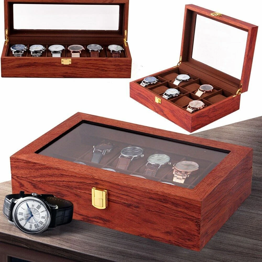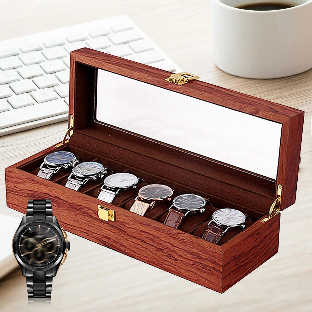 1. This watch box is a gorgeous and practical way to store and display your timepieces! The rosewood finish gives it a classy vintage look, while the velvet lining keeps watches safe from scratches. The glass top lets you admire your collection at a glance, and the sturdy build feels premium. Perfect for organizing watches neatly—whether at home or in a shop. Love how spacious it is, and the craftsmanship is impressive. Definitely worth it for any watch enthusiast!