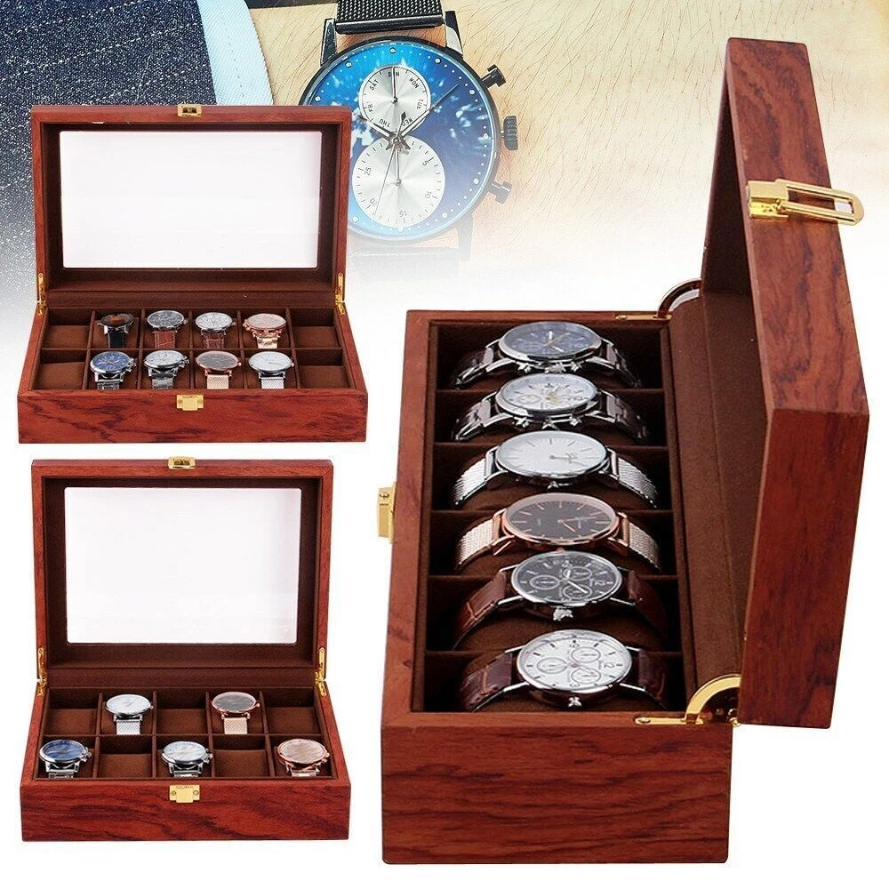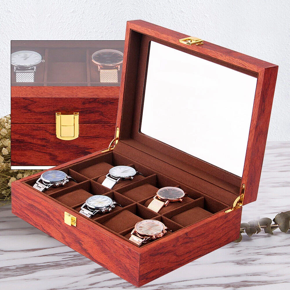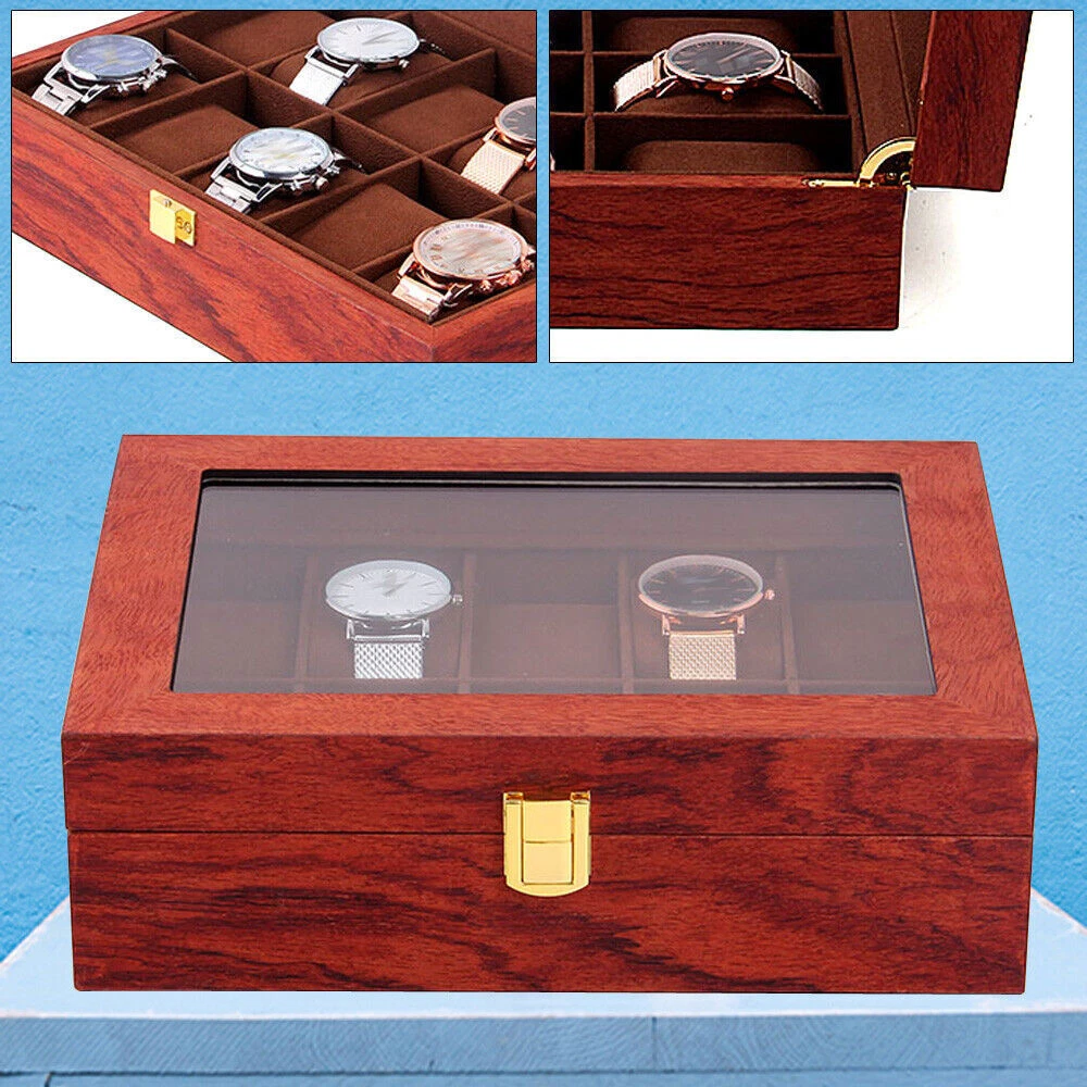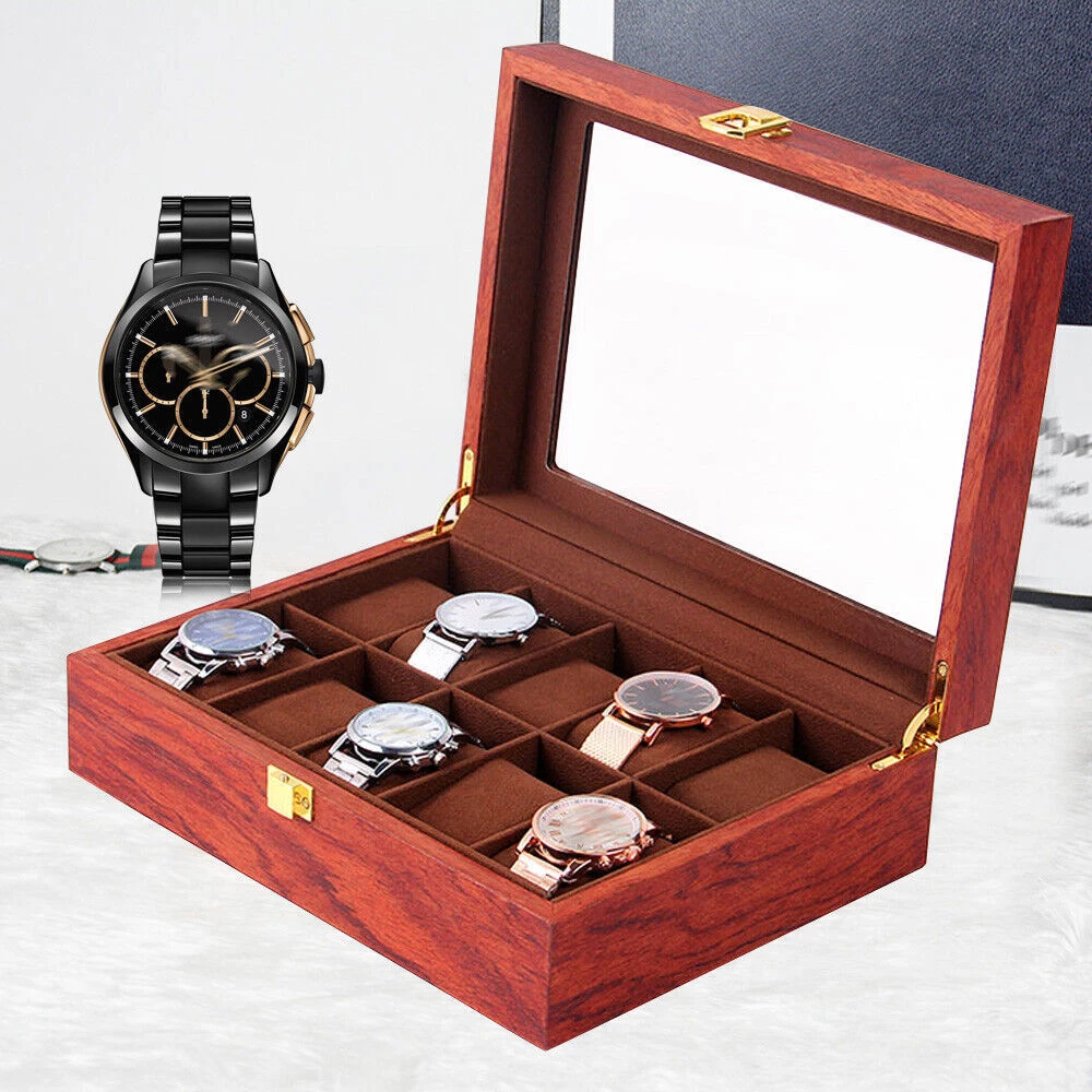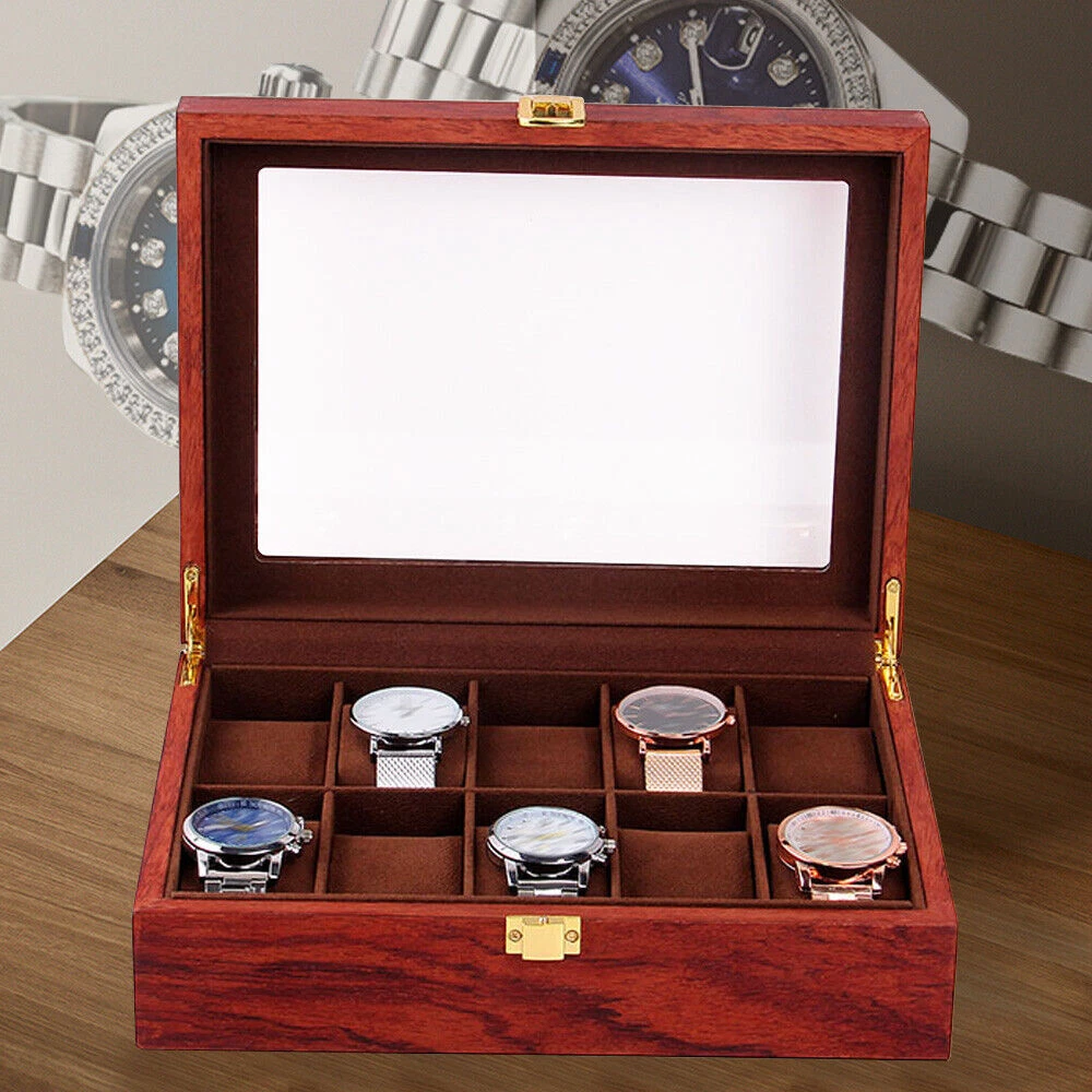 1. This watch box is a gorgeous and practical way to store and display your timepieces! The rosewood finish gives it a classy vintage look, while the velvet lining keeps watches safe from scratches. The glass top lets you admire your collection at a glance, and the sturdy build feels premium. Perfect for organizing watches neatly—whether at home or in a shop. Love how spacious it is, and the craftsmanship is impressive. Definitely worth it for any watch enthusiast!