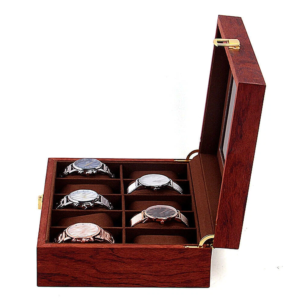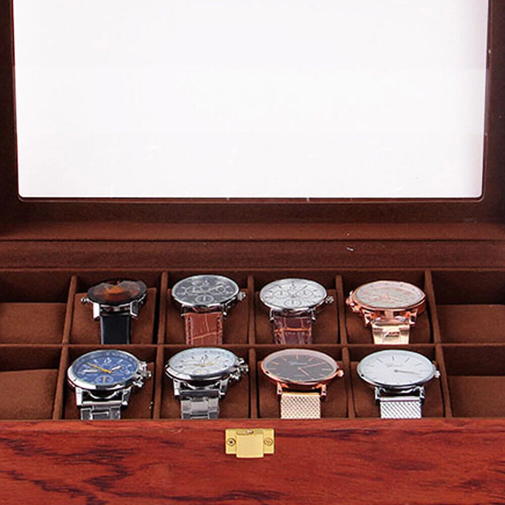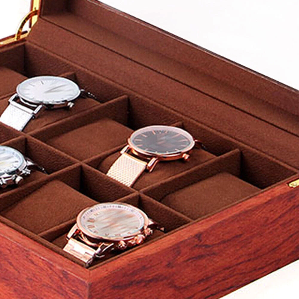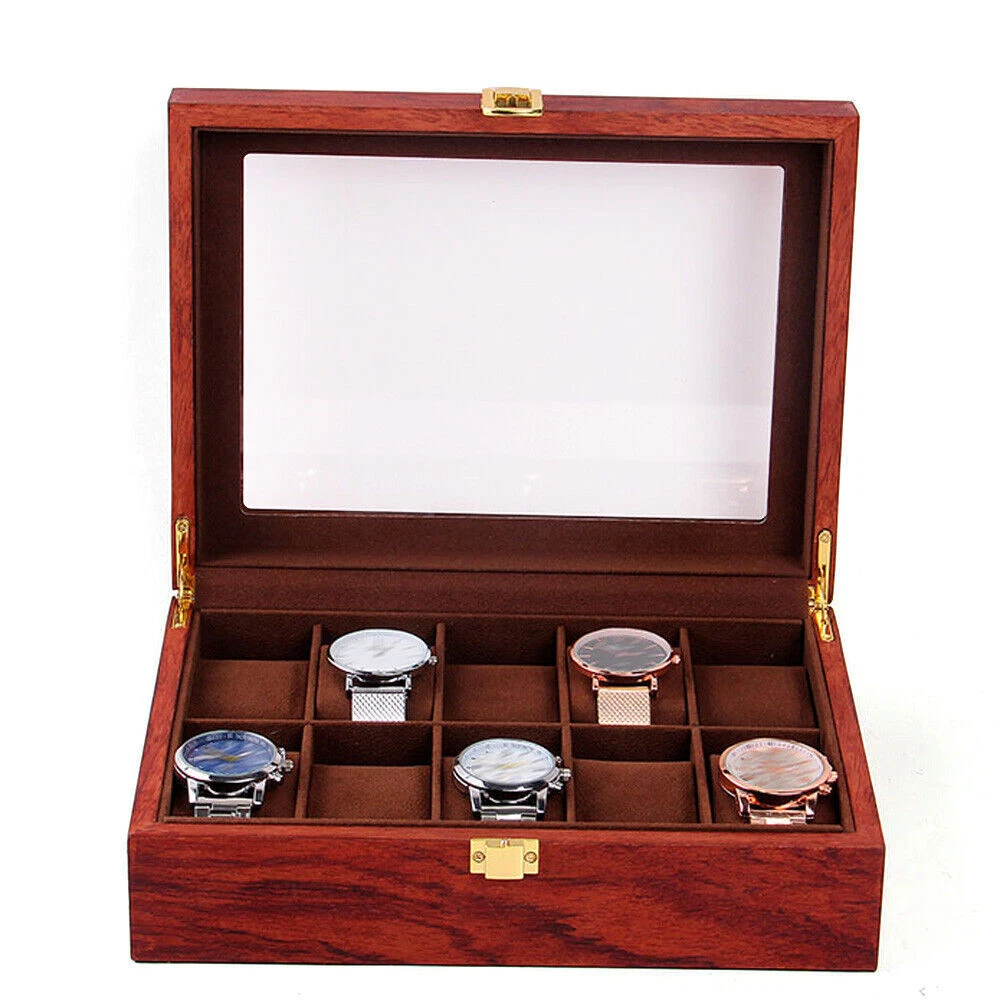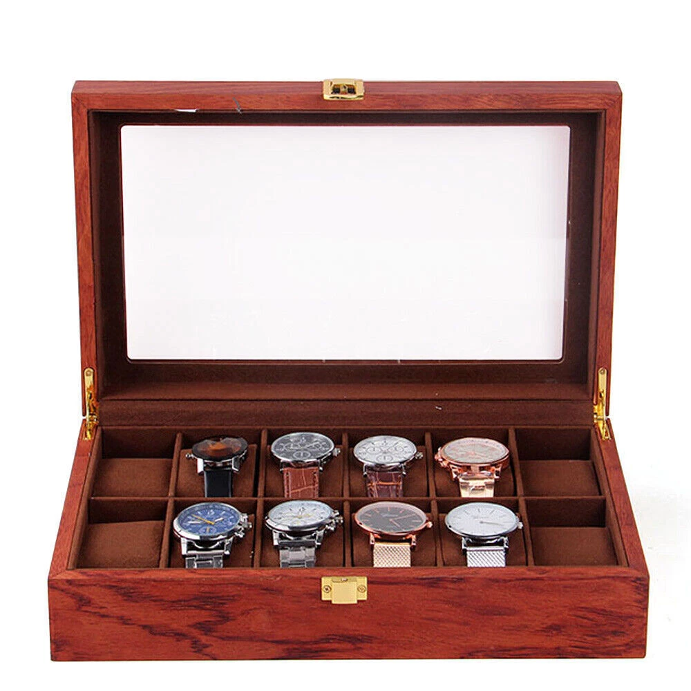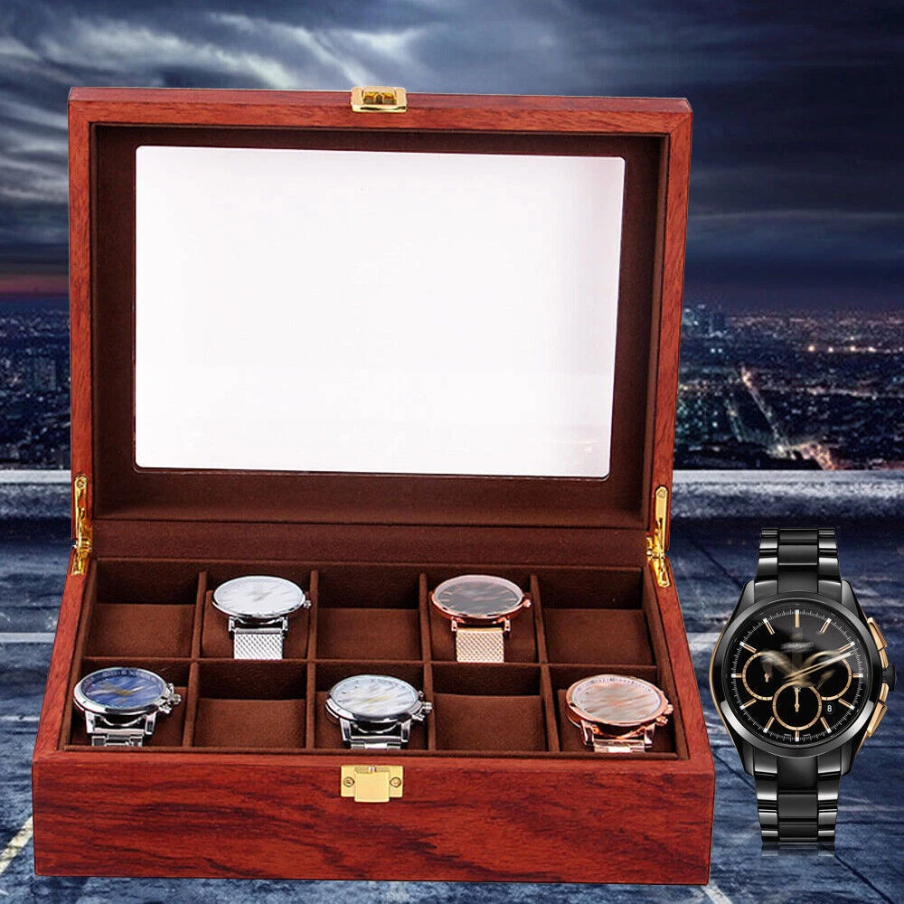 1. This watch box is a gorgeous and practical way to store and display your timepieces! The rosewood finish gives it a classy vintage look, while the velvet lining keeps watches safe from scratches. The glass top lets you admire your collection at a glance, and the sturdy build feels premium. Perfect for organizing watches neatly—whether at home or in a shop. Love how spacious it is, and the craftsmanship is impressive. Definitely worth it for any watch enthusiast!