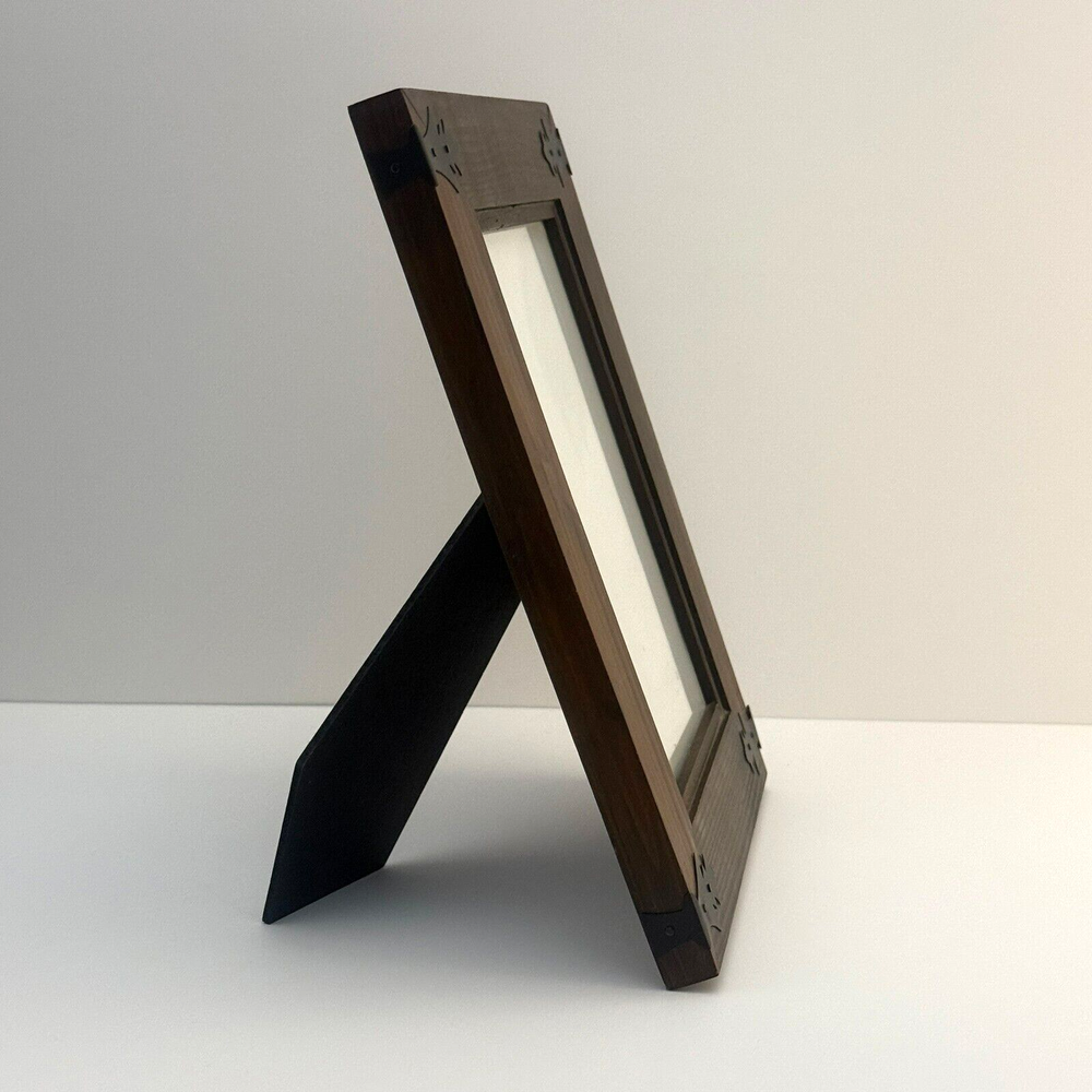 Vintage Wooden Photo Frame with Black Steel Corner fit 5" x 7" Tabletop Display. In good condition with minor signs of wear. Glass is included and clear. Features a vintage wooden frame with black steel corner accents. Perfect for displaying 5x7 inch photos on a tabletop. Adds a rustic touch to any space. See photos for more details. The pictures are of the exact item you will receive. Please check the photos for more details. Please note that this item might have a slight smell of smoke due to storage and the cardboard box used for shipping. We take great care in cleaning and carefully packing the item to minimize any potential odors. Additionally, we prioritize fast shipping to ensure the item arrives quickly and in excellent condition. If you have any concerns, feel free to contact us before purchasing. Thank you for your understanding!