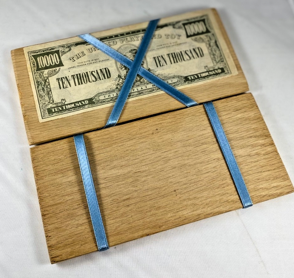 The Wooden Billfold Magic Trick is a fun and entertaining gag gift perfect for parties. Depending which way you open it, the bill will appear on either side of the ribbons making it seem like it is magically jumping side to side.