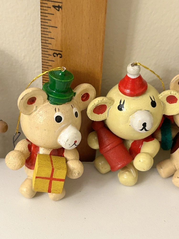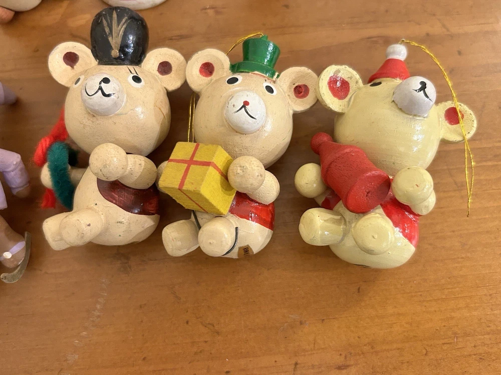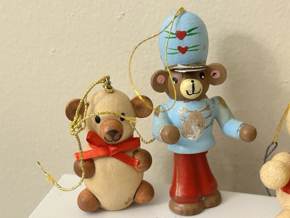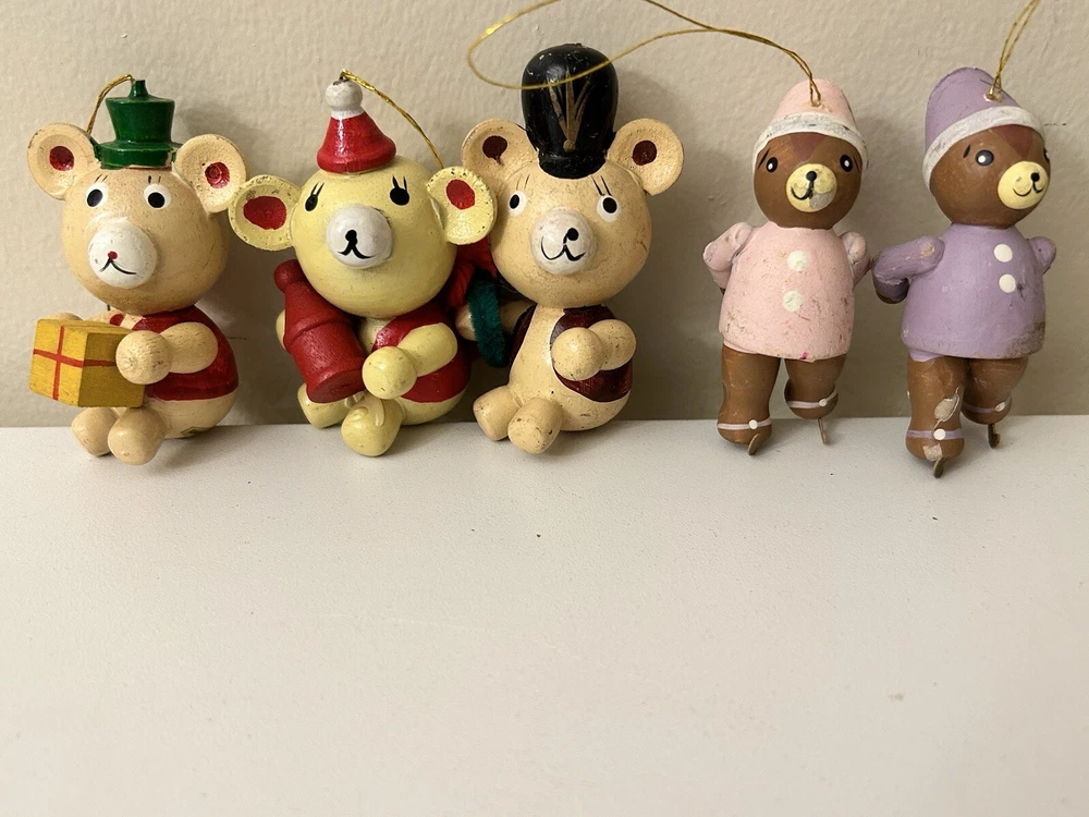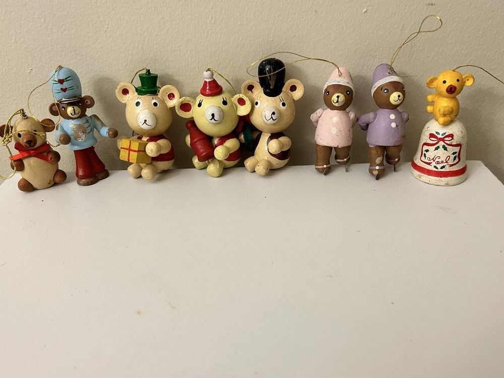 Vintage Wooden Christmas Tree Ornaments Lot Of 8 Painted Bears Vintage condition- visible signs of paint wear- refer to pics