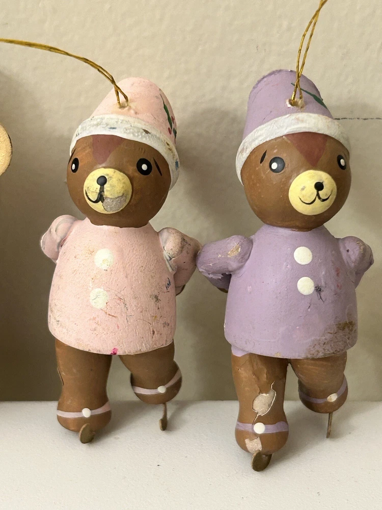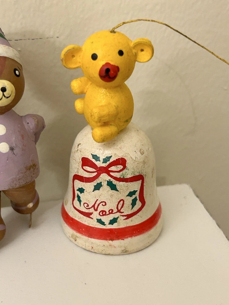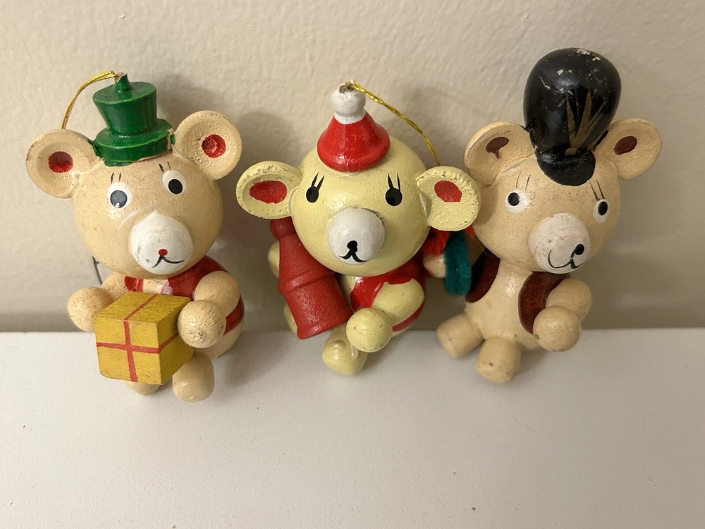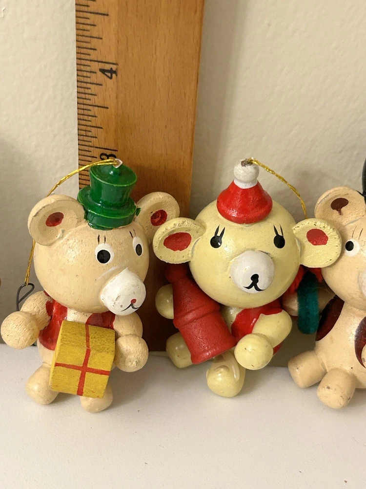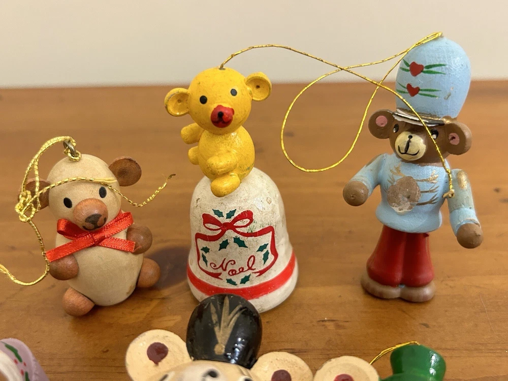Vintage Wooden Christmas Tree Ornaments Lot Of 8 Painted Bears Vintage condition- visible signs of paint wear- refer to pics