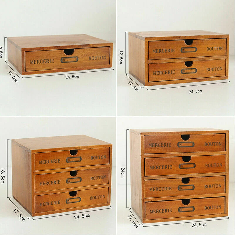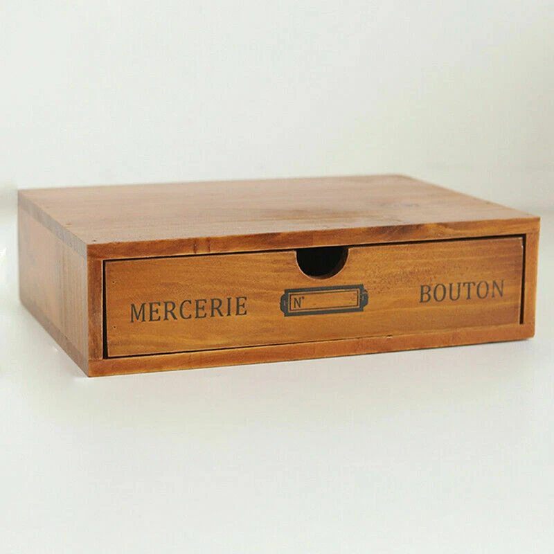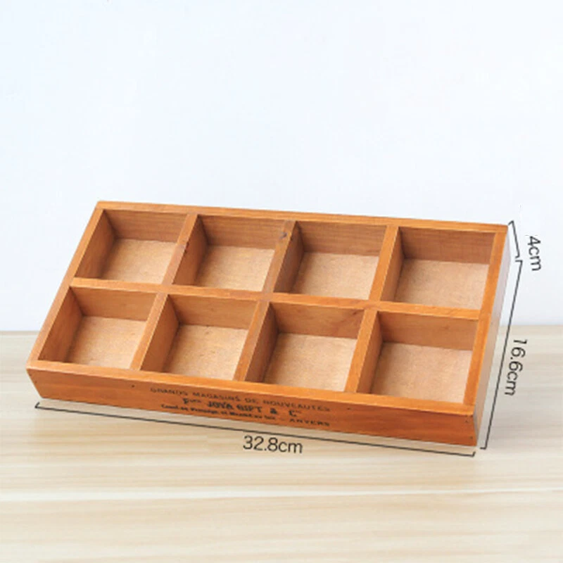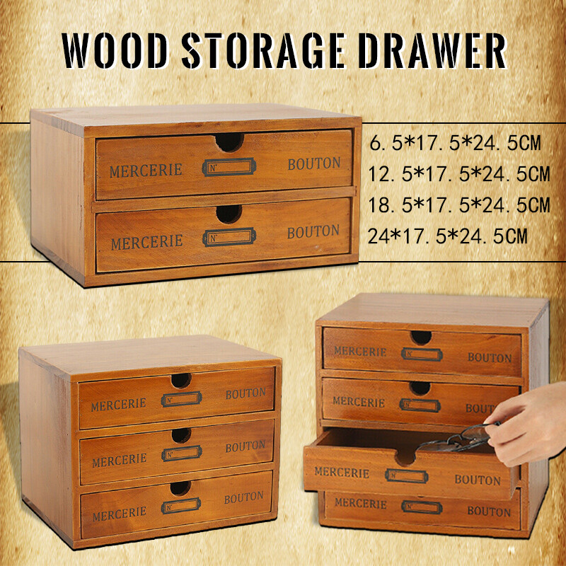 Features: *Vintage Wooden Storage Box Wood Drawer Jewelry Cosmetics Home Desktop Organizer *100% brand new and high quality *Wooden desktop storage box *Integrated into office life, practical and versatile *Can be used as a display booster and also for desktop storage Specifications: *Material: Wood *Optional style: 8 Grids, 1 Layer, 2 Layers, 3 Layers, 4 Layers (As Pictures Show) *Size: As Pictures Show Package Contents: 1*Storage Box Note: 1. The real color of the item may be slightly different from the pictures shown on website caused by many factors such as brightness of your monitor and light brightness. 2. Please allow slight manual measurement deviation for the data.