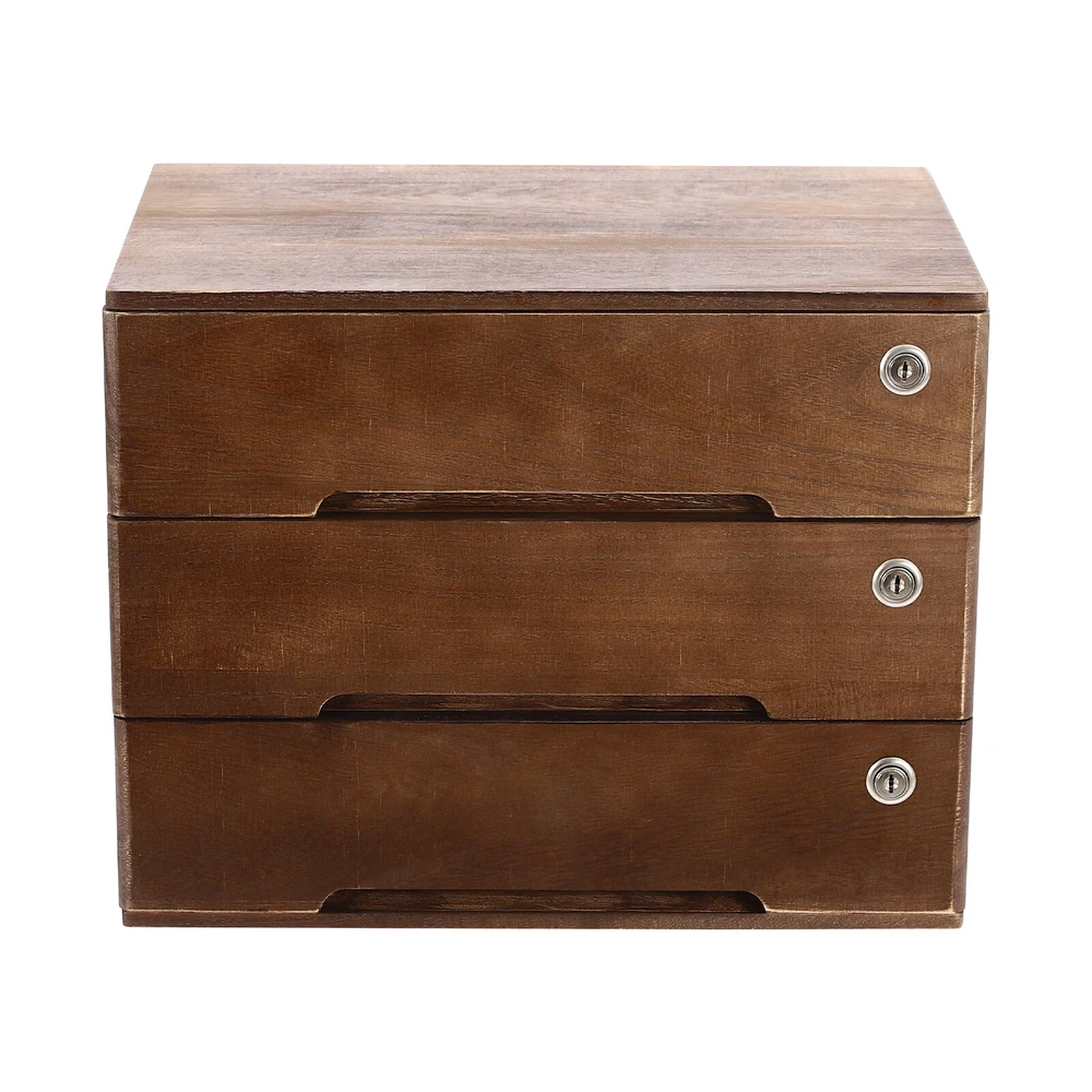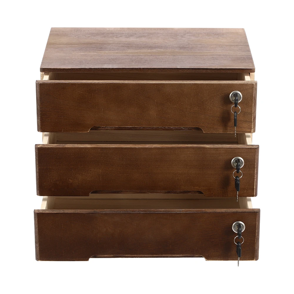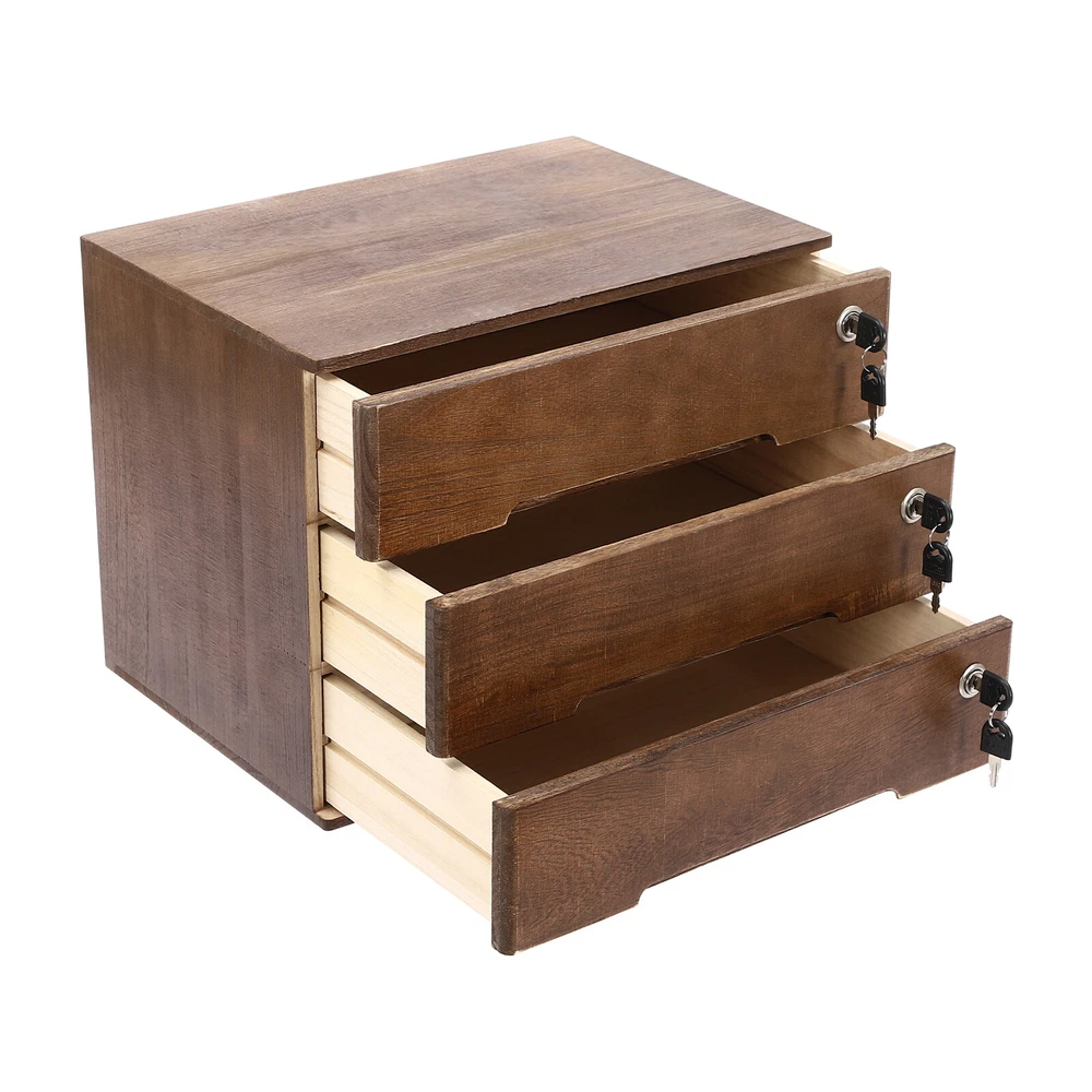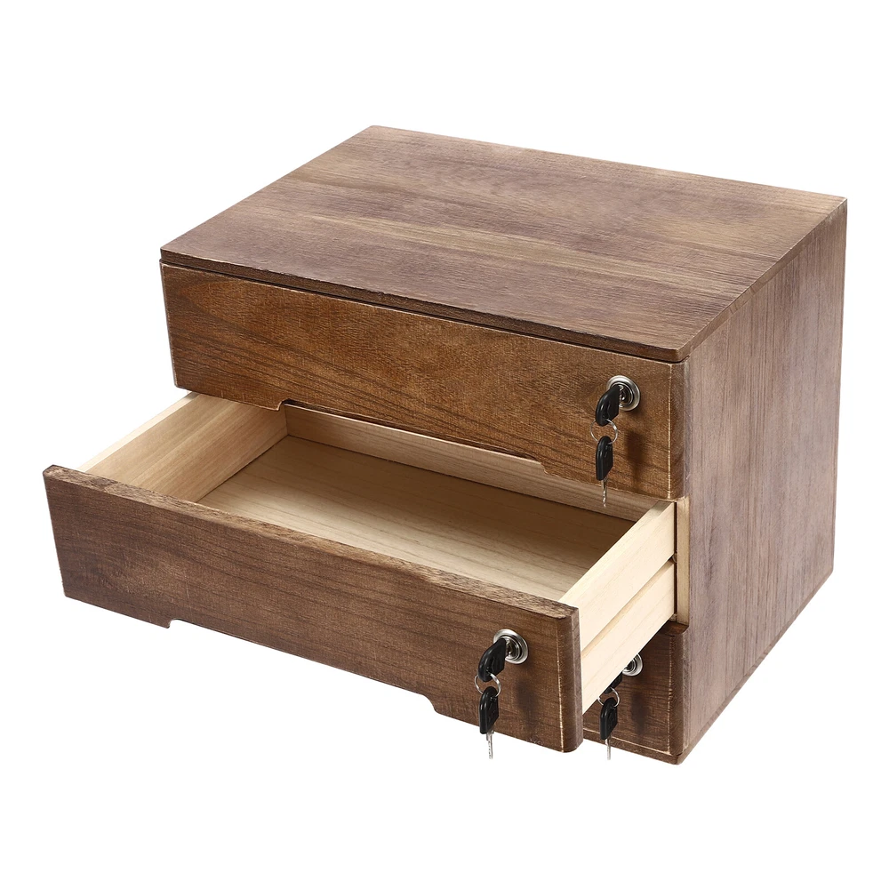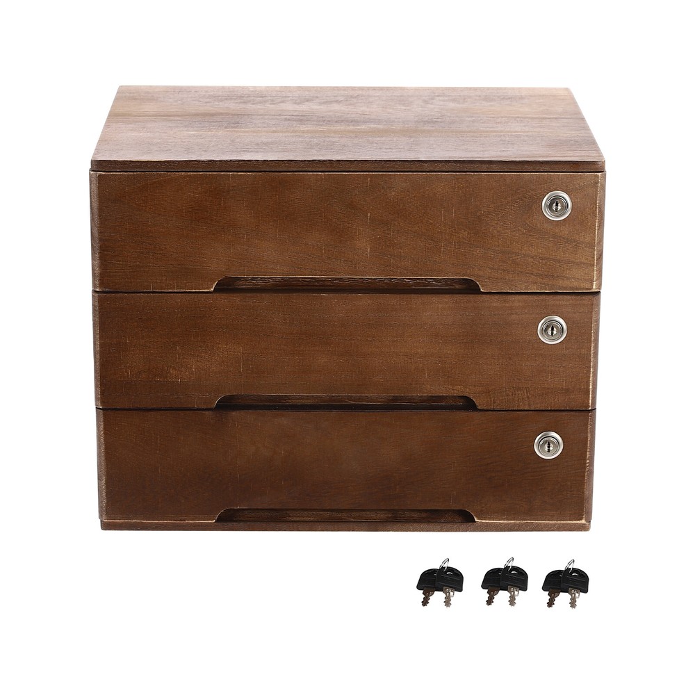 Vintage Wooden Desktop Storage Box Lockable 3-Drawer Office/Home Table Organizer Key Features Sturdy and Durable: It is made of high-quality wood with a painting treatment, which is eco-friendly, odorless, anti-corrosion, and rust-resistant , ensuring its beauty and long-time use. Excellent Organizer: This set of 3 drawers can sort and store data cables, kinds of files, and other daily essentials to create a cleaner, tidier office and home environment. Meanwhile, the top platform allows you to place some keys, plants, and chargers to make full use of your space. Minimalist Style: The walnut color scheme combines a rectangular shape and simple lines to create a minimalist aesthetic, adding a touch of refinement to your room. Thoughtful Design: The locking design ensures the security of your stored documents and comes with 3 pairs of keys for your convenience. Stable Construction: The thickened material and rectangular structure give it excellent stability, meeting your needs for storing various items without tipping o ver. Effortless Clean: Thanks to its smooth surface, simple construction, and clear texture, you can wipe it clean with a damp rag. Installation-free : What you receive will be an already assembled product, so you can use it directly, which is very convenient and time-saving. Ideal Gift: Thanks to its practicality, it will make a fine gift for family, friends, and loved ones on Christmas, Father's Day, Mother's Day, birthdays, anniversaries, and holidays. Details Rounded Edges: The rounded edges are burr-free , which is comfortable to touch a nd can care for your skin. Curved Handle: It helps you open and close the drawer conveniently while conforming to the design of the cabinet. Wood Rail: It is durable while ensuring smooth switching. Application It can be placed in the office, study, dresser, and more to store stamps, sticky notes, paper clips, scissors, bills, pens, pencils, business cards, notepads, cosmetic collections, toiletries, jewelry, hair accessories, crafts, etc. Specification Color: Walnut Material: Wood Finish: Painting Style: Compact Shape: Rectangular Assembly Required: No Product Care Instructions: Wipe with a Soft Cloth Recommended Uses For Product: Files Special Feature: Lockable Installation Type: Countertop Room Type: Home Office Door Style: Drawer, Lock Number of Tiers: 3 Each Drawer Size: 36*22*8cm/14.17*8.66*3.15in Product Size: 40*28*31cm/15.75*11*12.2in Package Size: 63*44.5*46cm/24.8*17.52*18.11in Gross Weight: 3.8kg/8.38lbs Net Weight: 3.5kg/7.72lbs Package Included 1* Desktop Storage Cabinet 6* Keys Notes Please note that the log product is subject to wood knots, scabs, mineral threads, etc., but it's normal. Please make sure that you do not mind before purchasing. Please note that this product does not include files and other storage items. Please place the product flat and try to avoid direct sunlight, and please do not put the furniture directly on the air conditioning or warm side, to avoid deformation and cracking of the furniture by moisture. Please allow the slight color difference caused by the shooting light and 1-3cm error due to manual measurement and make sure you do not mind before ordering. Payment Delivery details Terms of sales About us Contact us Payment We accept ebay payment 。 Fees such as import duties, taxes are not included in the item price or shipping costs. These charges are the buyer's responsibility. Delivery details Shipping: 2-9 working days to: USA Terms of sales We maintain high standards of excellence and strive for hundred percent customer satisfaction. Feedback is very important to us. We hope that you contact us immediately before you give neutral or negative feedback, so that we can address your concerns. It is impossible to address issues if we do not know about them! About us Your satis faction is our ultimate goal. We work hard to earn your trust and future business. Our certified technicians have tested each item before shipping. The unit comes with 1 year limited warranty on all manufacturing defects. a) If you receive a defective item, you may return it or ask for a discount. Please contact us within 14 days after you receive the package. b) What you returned must be intact and in its original packaging as re? u. Customer is responsible for shipping costs of the returned item. c) We will cover the cost of shipping back t with the shipping rate indicated in the registration page. We will send you a new unit or refund the full payment you paid. Thank you. Contact us Business Hour Business Hour: Monday To Friday: 8:30 AM to 5:00 PM (Beijing China time) Due to time zones, our reply to your questions may not be immediately. But within above working time, we will reply your email within 24 hours. If it's non-workdays, please kindly be patient and wait till Monday. Please contact us with ebay message. Please feel free to contact us if you have any questions. Monday To Friday: 8:30 AM to 5:00 PM (Beijing China time) Due to time zones, our reply to your questions may not be immediately. But within above working time, we will reply your email within 24 hours. If it's non-workdays, please kindly be patient and wait till Monday. Please contact us with ebay message. Please feel free to contact us if you have any questions. Please Note Shipment within one working day Brand Unbranded Item Height / Item Length / Item Width / Type Desktop Storage Box Color Walnut Material Wood Finish Painting Style Compact Assembly Required No Product Care Instructions Wipe with a Soft Cloth Recommended Uses For Product Files Special Feature Lockable Installation Type Countertop Room Type Home Office Door Style Drawer, Lock Number of Tiers 3 Each Drawer Size 36*22*8cm/14.17*8.66*3.15in Product Size 40*28*31cm/15.75*11*12.2in UPC Does not apply EAN Does not apply On Apr 9, 2026 at 00:24:24 PDT, seller added the following information:
