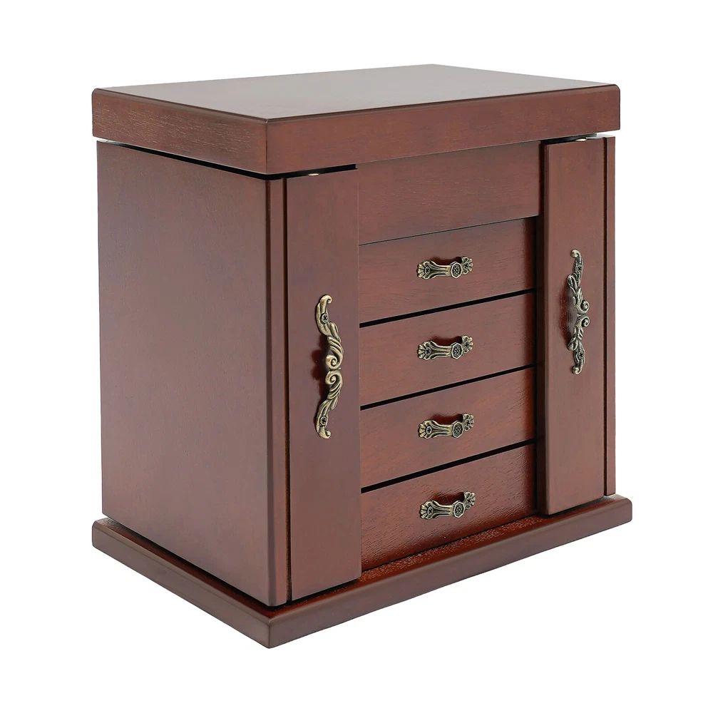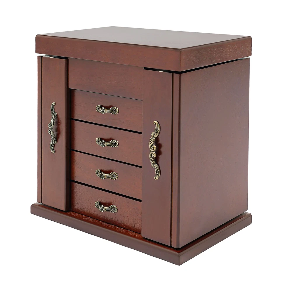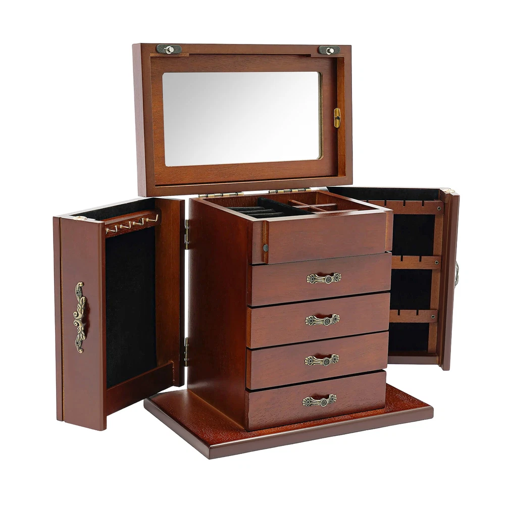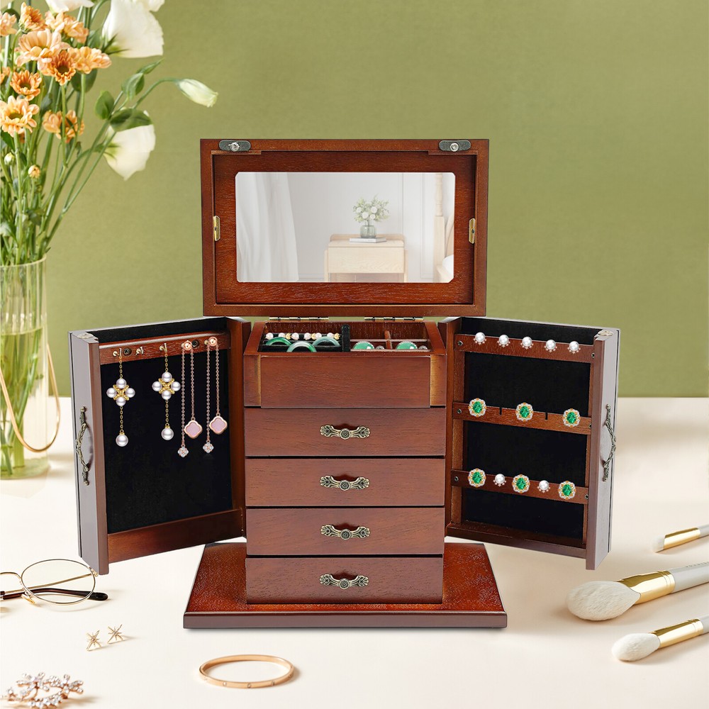 Specifications Color: Brown Style: Vintage Shape: Rectangular Material: Wood, Sponge Process: Polishing, Spray Painting Assembly Required: No Mounting Type: Tabletop Number of Drawers: 4 Number of Tiers: 5 Product Size: 25*15*24cm/9.84*5.91*9.45in Packaging Size: 31.5*23*32cm/12.4*9.06*12.6in Gross Weight: 3.15kg/6.94lbs Net Weight: 2.99kg/6.59lbs Package Included 1* Jewelry Storage Box Vintage Wooden Jewelry Cabinet Armoire Box Big Storage Box 5 Drawer W/Mirror Description Do you want to save your messy dressing table? Our jewelry storage box is the ideal choice for you to organize your jewelry. Each tier has been carefully planned to store various accessories such as rings, earrings, necklaces, etc. in an orderly manner, effectively avoiding entanglement and damage. Made of premium materials, it is not only durable but also aesthetically pleasing, making it an elegant choice for improving quality of life and personal taste. Key Features Premium Material: It is made of wood material and sponge, with a spray painting, which is scratch-resistant, impact-resistant, and not easy to deform, ensuring a long service life. Storage Master: Multiple compartments on the first tier allow you to store commonly used accessories such as bracelets, and rings. 4 drawers allow you to store watches, skin creams, facial masks, facial cleansers, etc. Multiple hooks and pin slots on both sides are designed to store hairpins, brooches, necklaces, etc., to meet your personalized storage needs. Thoughtful Design: The built-in mirror is designed to be convenient for you to put on earrings, necklaces, and daily grooming. The built-in sponge backing can protect your precious items from scratches. Exquisite Appearance: Smooth lines and retro-style design make it not only a storage box but also an exquisite decorative artwork on the top of the dressing table. Lightweight &Compact Size: The product with a lightweight(6.59lbs) and compact size(9.84*5.91*9.45in) allows you to easily move and place it without taking up much space on your dresser. Exquisite Gift: With good practicability and a retro appearance, it can be used as an ideal gift for parents, friends, and lovers so that they can also enjoy a more exquisite life. Easy Clean-up : Simple construction, smooth surfaces, and pull-out drawers make this product easy to clean, you just need a towel to remove dust easily. Buy with Confidenc e: We stand behind all our guests and look forward to assisting you with your purchase. It is our pleasure to answer your questions and concerns. The end of the story between us is not "we sell and you buy". Details Exquisite Handles: They allow for convenient and smooth opening and closing of the drawers and doors, and easy access to your items. Smooth Edges: The smooth edges enhance the beauty of the product and better care for your skin when using and cleaning it. Application The product is suitable to be placed in the living room, bedroom, dresser, vanity, and other places for organizing necklaces, bracelets, earrings, studs, hairpins, watches, rings, and other jewelry (not included). Specifications Color: Brown Style: Vintage Shape: Rectangular Material: Wood, Sponge Process: Polishing, Spray Painting Assembly Required: No Mounting Type: Tabletop Number of Drawers: 4 Number of Tiers: 5 Product Size: 25*15*24cm/9.84*5.91*9.45in Packaging Size: 31.5*23*32cm/12.4*9.06*12.6in Gross Weight: 3.15kg/6.94lbs Net Weight: 2.99kg/6.59lbs Package Included 1* Jewelry Storage Box Notes Please check the size carefully before ordering. This product only includes a jewelry storage box, other items in the picture are not included. Please do not expose the product to the sun or soak it in water for a long time. Please be informed that the drawer and doors on both sides cannot be opened when the lid on top is closed. Only after the lid is opened, can the drawers and doors be opened. Please allow the slight color difference caused by the shooting light and 1-3cm error due to manual measurement, and make sure you do not mind before you order. Payment Delivery details Terms of sales About us Contact us Payment We accept ebay payment 。 Fees such as import duties, taxes are not included in the item price or shipping costs. These charges are the buyer's responsibility. Delivery details Shipping: 2-9 working days to: USA Terms of sales We maintain high standards of excellence and strive for hundred percent customer satisfaction. Feedback is very important to us. We hope that you contact us immediately before you give neutral or negative feedback, so that we can address your concerns. It is impossible to address issues if we do not know about them! About us Your satis faction is our ultimate goal. We work hard to earn your trust and future business. Our certified technicians have tested each item before shipping. The unit comes with 1 year limited warranty on all manufacturing defects. a) If you receive a defective item, you may return it or ask for a discount. Please contact us within 14 days after you receive the package. b) What you returned must be intact and in its original packaging as re? u. Customer is responsible for shipping costs of the returned item. c) We will cover the cost of shipping back t with the shipping rate indicated in the registration page. We will send you a new unit or refund the full payment you paid. Thank you. Contact us Business Hour Business Hour: Monday To Friday: 8:30 AM to 5:00 PM (Beijing China time) Due to time zones, our reply to your questions may not be immediately. But within above working time, we will reply your email within 24 hours. If it's non-workdays, please kindly be patient and wait till Monday. Please contact us with ebay message. Please feel free to contact us if you have any questions. Monday To Friday: 8:30 AM to 5:00 PM (Beijing China time) Due to time zones, our reply to your questions may not be immediately. But within above working time, we will reply your email within 24 hours. If it's non-workd