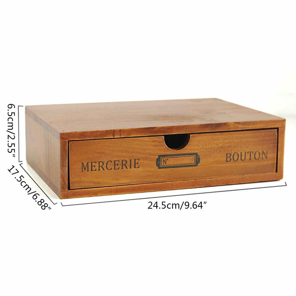 Vintage Wooden Storage Box Drawer Cosmetic Jewelry Organizer Case Single Layer