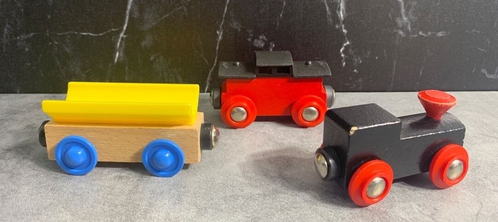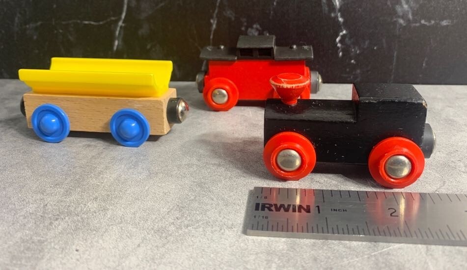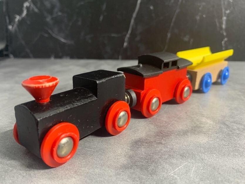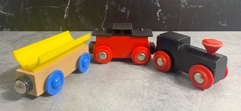 Vintage Wooden Train Set - Magnet Connection - Plastic, Wood, and Metal