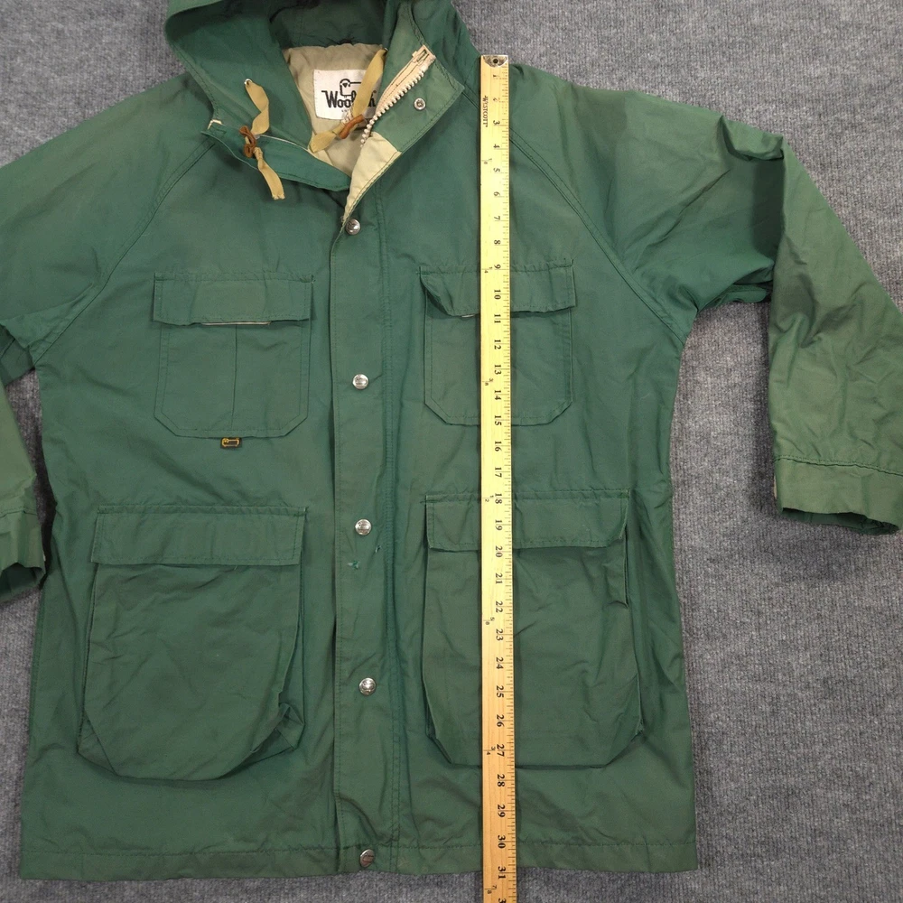 Vintage Woolrich Parka Jacket Mens M Spruce Green Hooded Lined Utility Pockets Good vintage condition. Wear and fading throughout. Marks on front pocket and on hem, some tears on zipper fly, highlighted in last 3 photos. Please see photos for measurements. Sold as pictured. Thanks for looking! -Measurements are approximate, please measure and check your favorite items at home to estimate fit -100% authenticity guaranteed -Items typically ship next business day