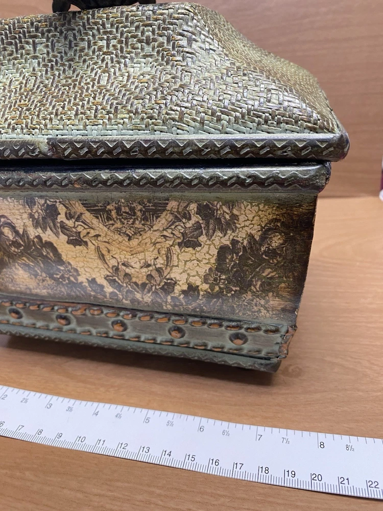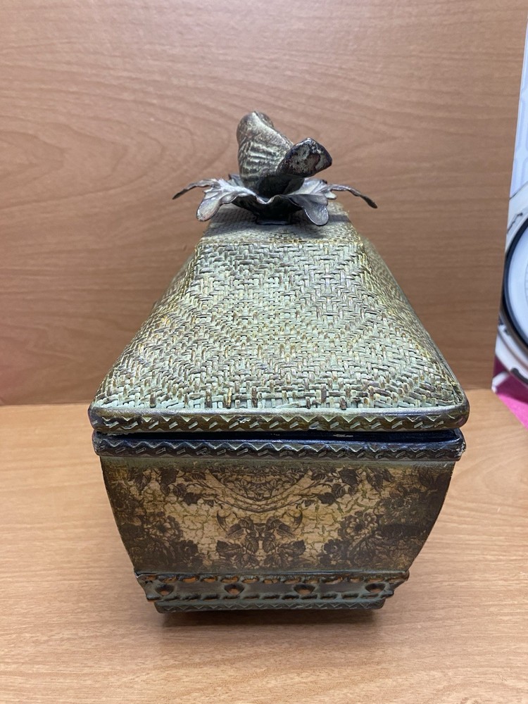 This woven wood box is absolutely stunning! The old-fashioned charm, intricate metal detailing, and beautifully carved wooden bird make it a perfect decorative piece. It adds a rustic yet elegant touch to any space. The craftsmanship is impressive, and it feels sturdy and well-made. Love how unique and eye-catching it is—great for storing small treasures or just displaying as a centerpiece. Highly recommend!