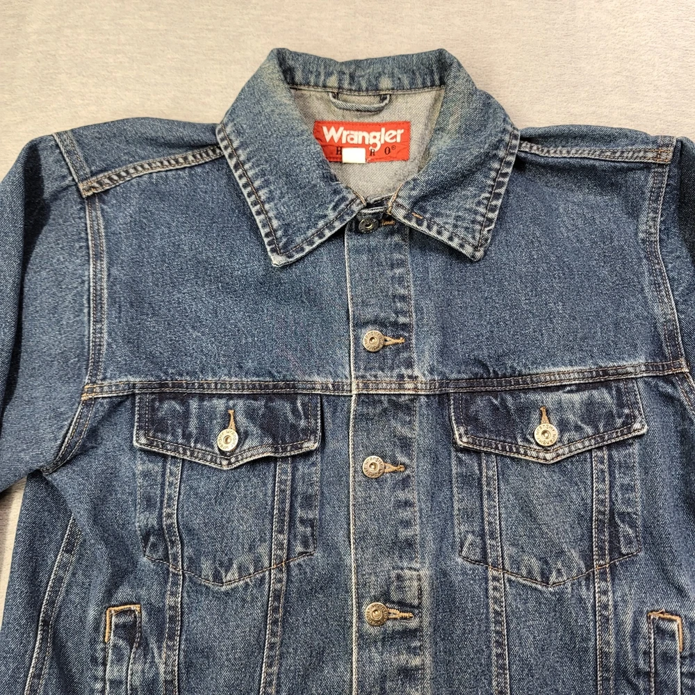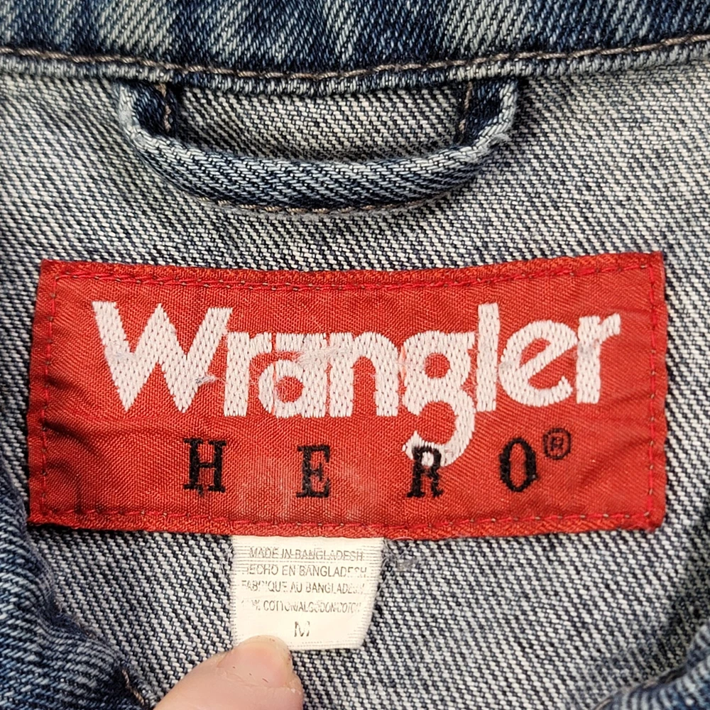 Vintage Wrangler Denim Jacket Mens Medium Blue Short Hero Button Up Jean Trucker