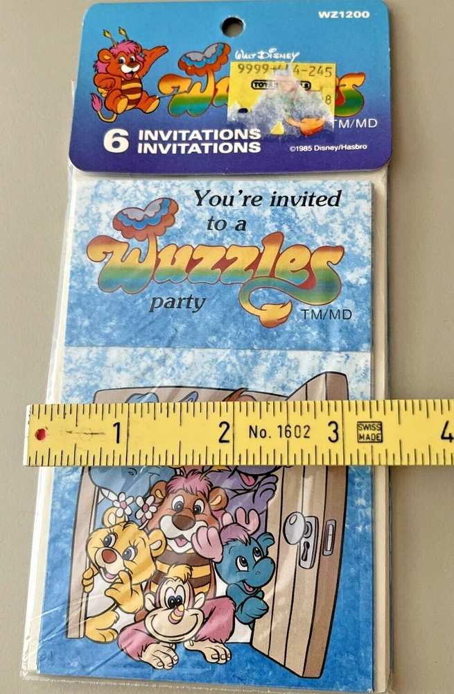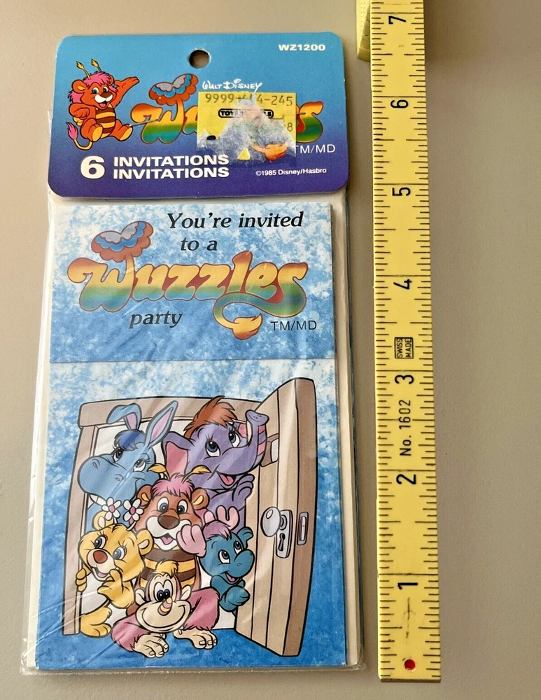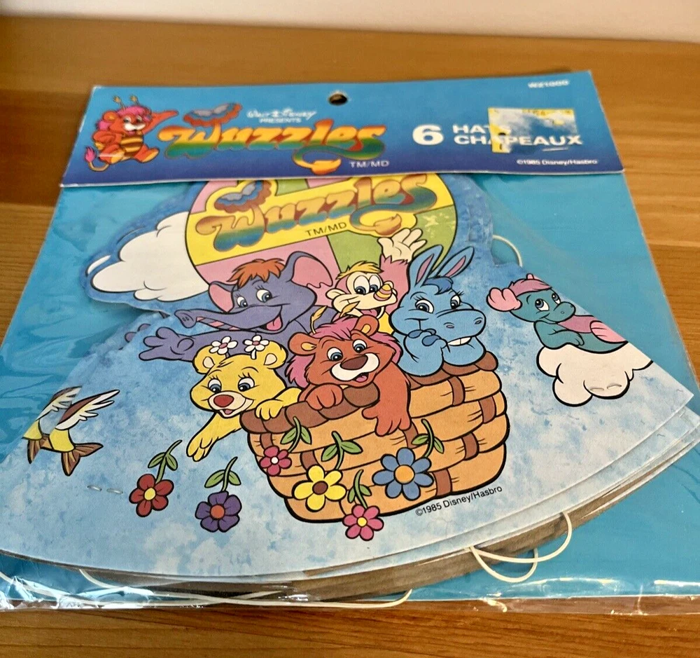 Color:MulticolouredTheme:1980sCharacter Family:WuzzlesCountry/Region of Manufacture:Taiwangtin13:Does not applyType:Party Supply KitBrand:Hasbro Walt Disney ProductionsOccasion:BirthdayCharacter:WuzzlesSet Includes:Hat, InvitationsUPC:Does not apply