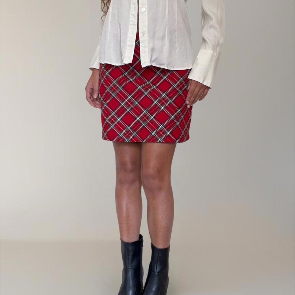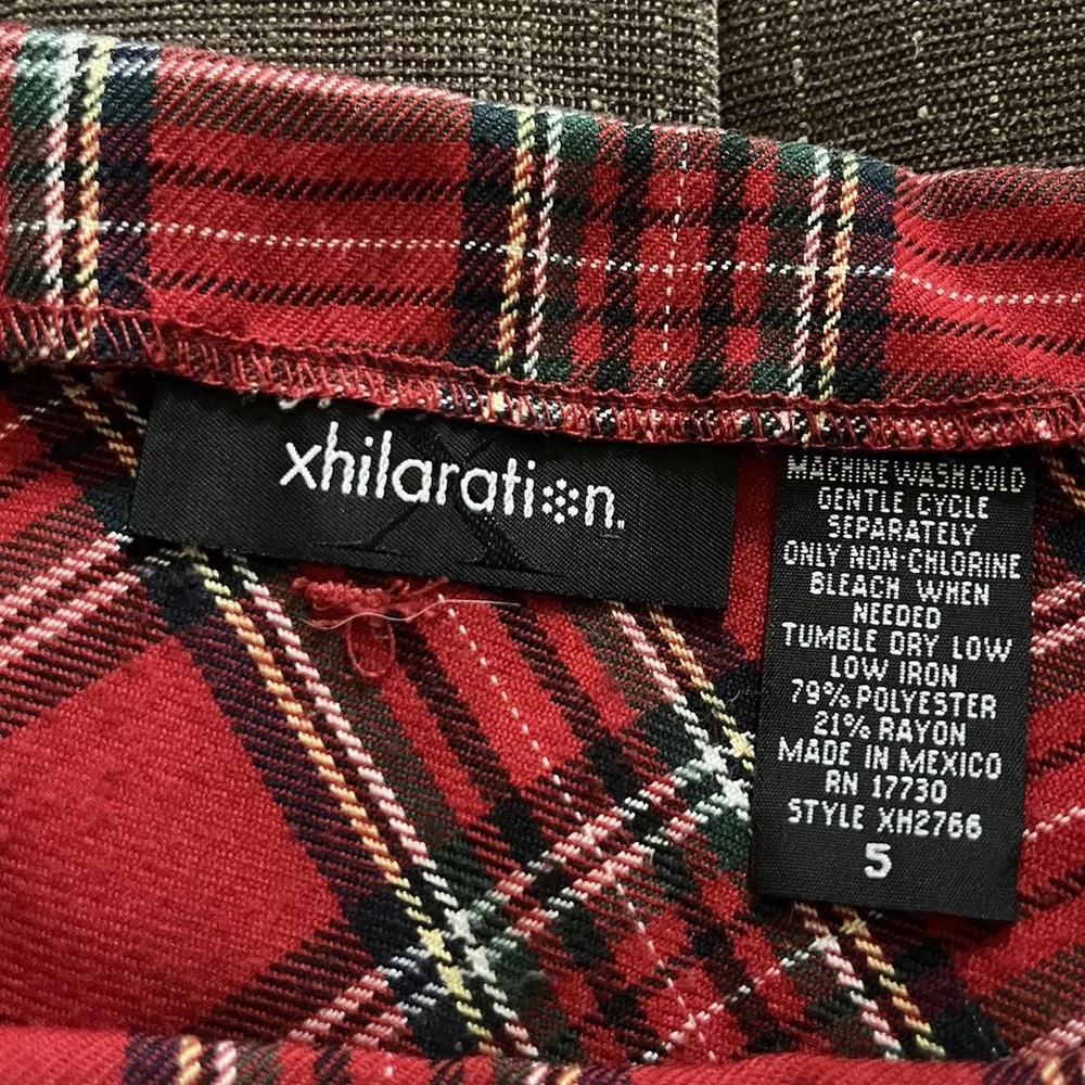 Womens Vintage Xhilaration Red Plaid Mini Skirt • size 5 • 30 waist (15” flat) • 15” length