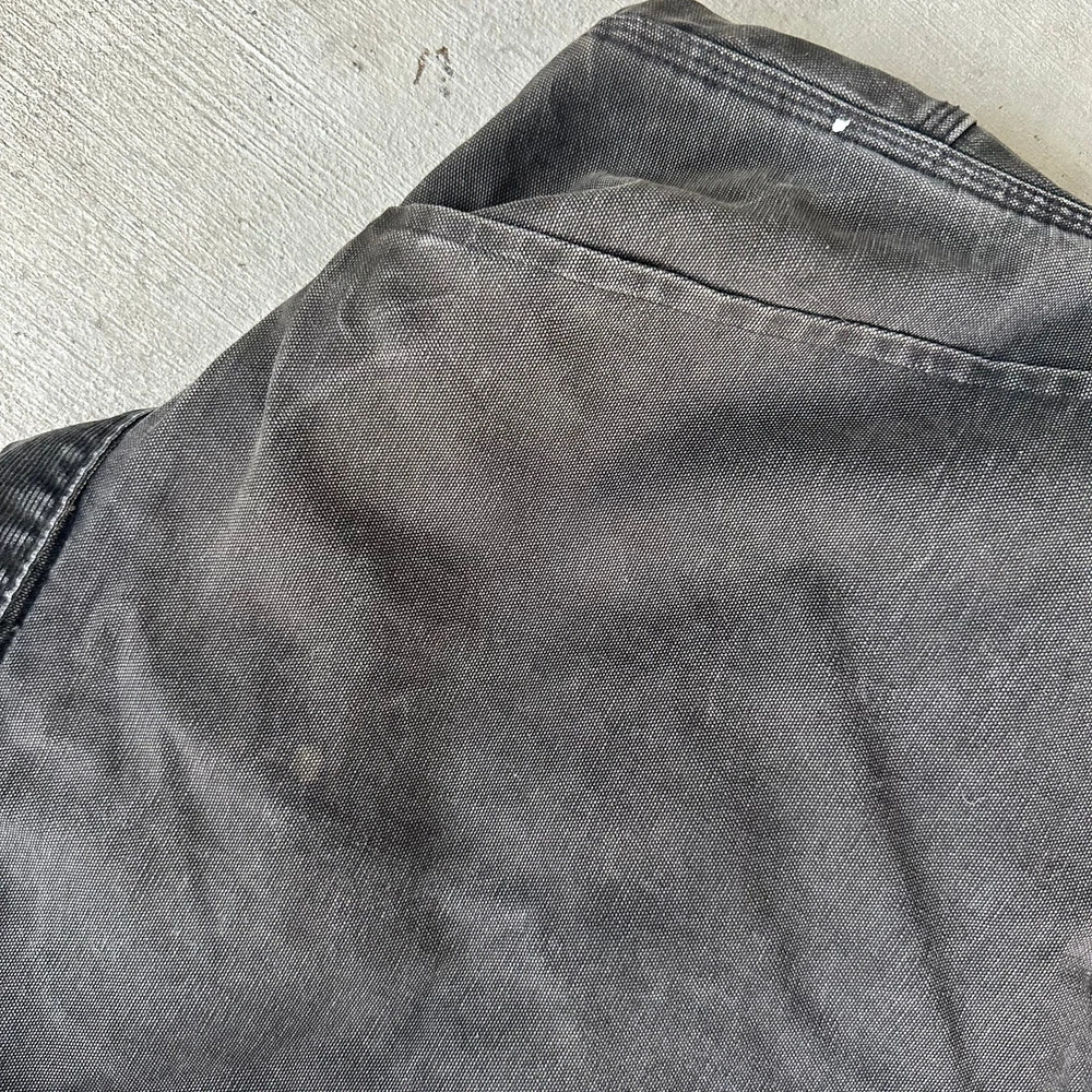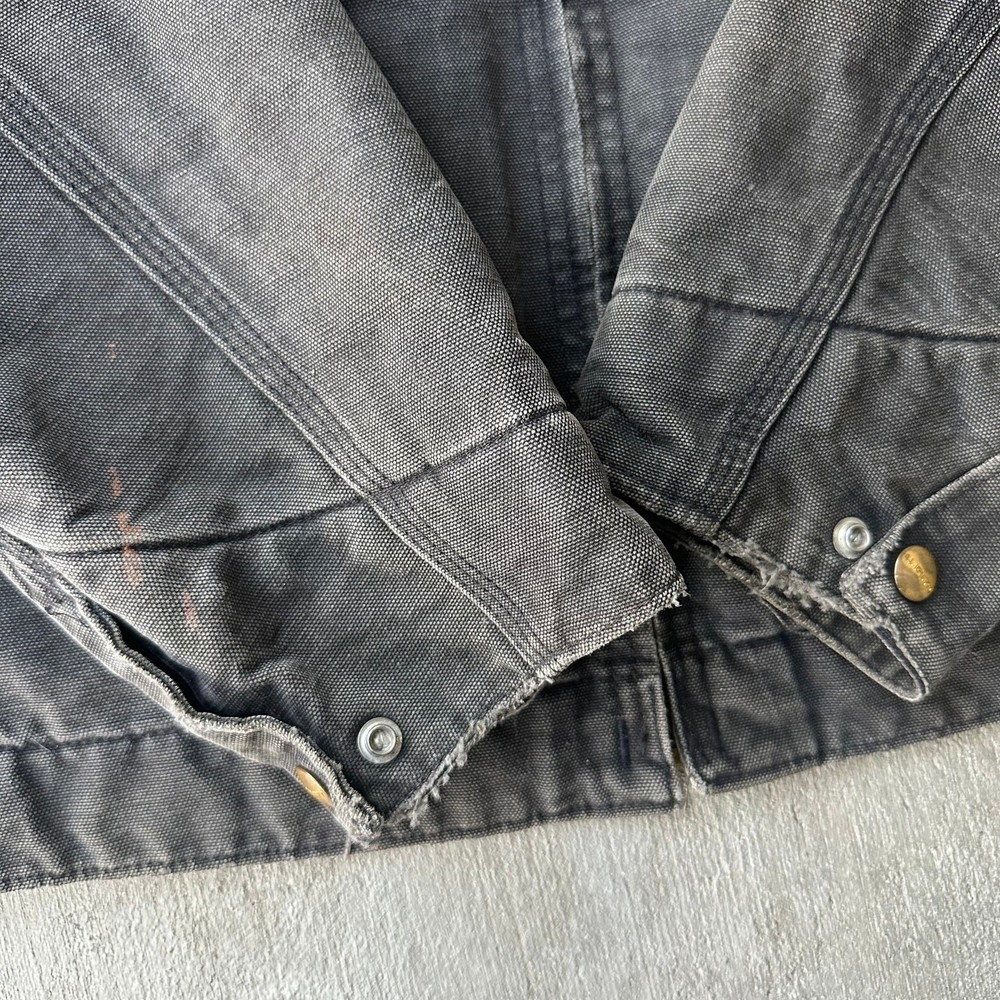 Vintage Y2K black Carhartt Detroit work wear jacket. Super sick fade on this one! Some slight discoloration throughout, see photos. Has no tag measures 24.5x27.5 so please check measurements before purchasing. I do my best to show any flaws in pictures. Quick shipping! Bundles encouraged! @ants_haul on Instagram.