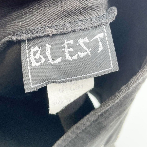 Vintage Blest Pleated Mini Skirt with Studs Black mini skirt with pleating detail and olive green plaid print underneath Stud detailing along pleats Low rise Micro mini length Pleated Back zipper closure Cotton/Spandex Made in USA Size Medium Good pre-owned/vintage condition Approximate measurements laying flat: Waist: 14.5" across Length: 14” tags: 90s, 2000s, punk, grunge, fairy, y2k, micro mini, low rise, mean girls, retro, dark academia, preppy, schoolgirl, goth, mall goth, gothic, emo