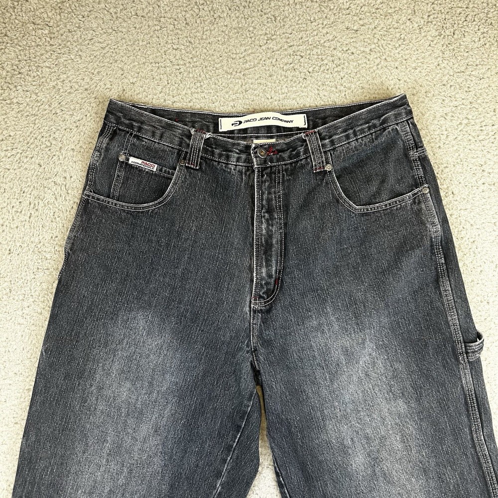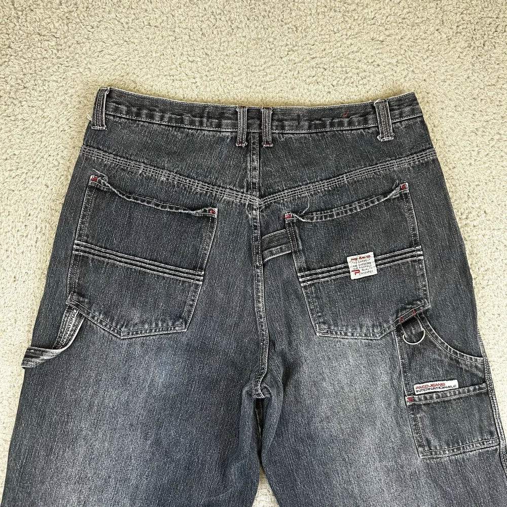 Model: Na Vintage: Yes Closure: Zip Material: Cotton Features: Easy Care, Pockets, Comfort Fabric Wash: Medium Inseam: 31 in Accents: Button, Zipper, Logo gtin13: Does not apply Type: Jeans Fit: Relaxed Brand: PACO Country/Region of Manufacture: Malaysia UPC: Does not apply Department: Men Color: Blue Style: Wide-Leg Pocket Type: Cargo Pocket Waist Size: 36 in Fabric Type: Denim Product Line: Na Size: 36 Size Type: Regular Theme: 90s, Retro