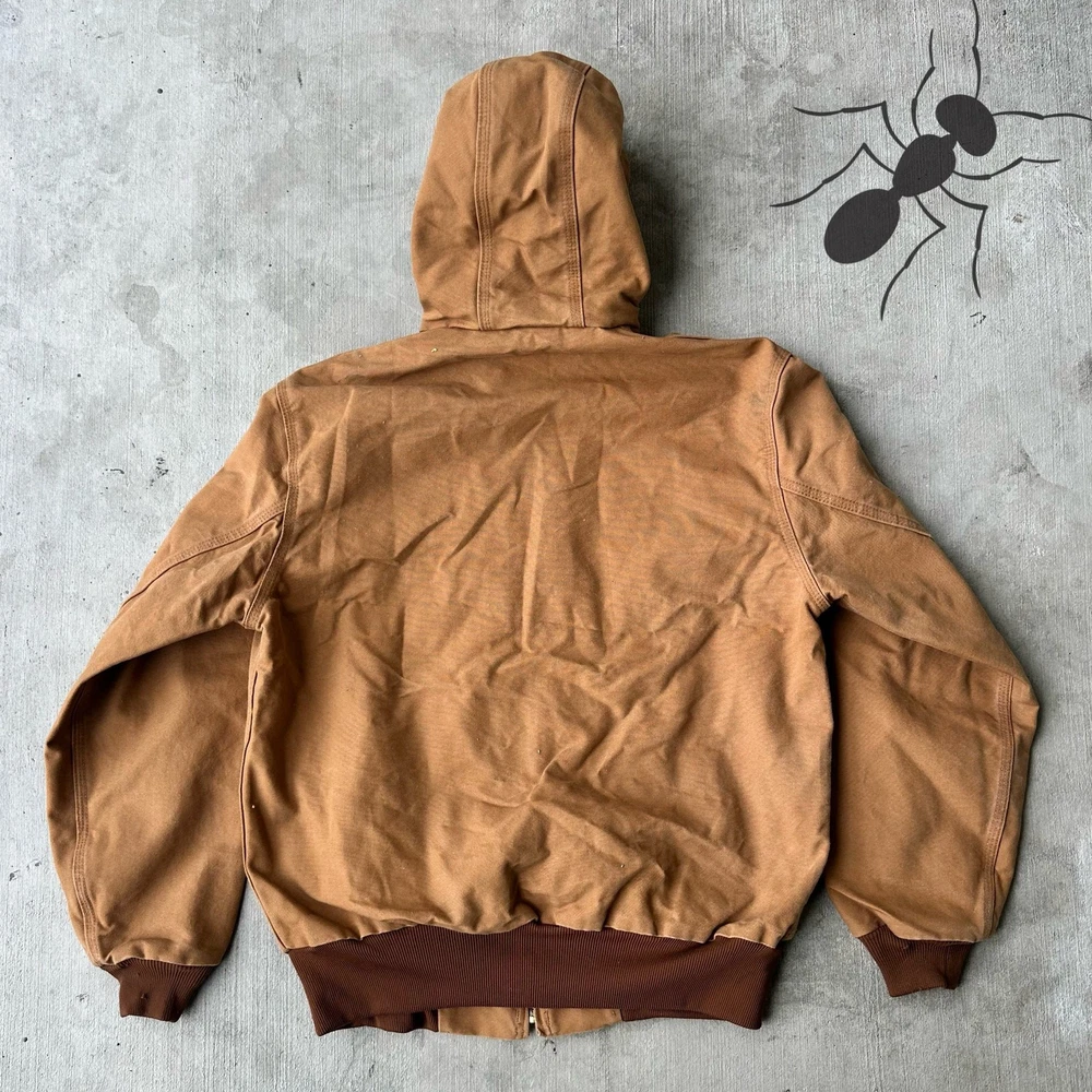 Vintage Y2K Brown Carhartt Hooded Work Jacket for Active Wear