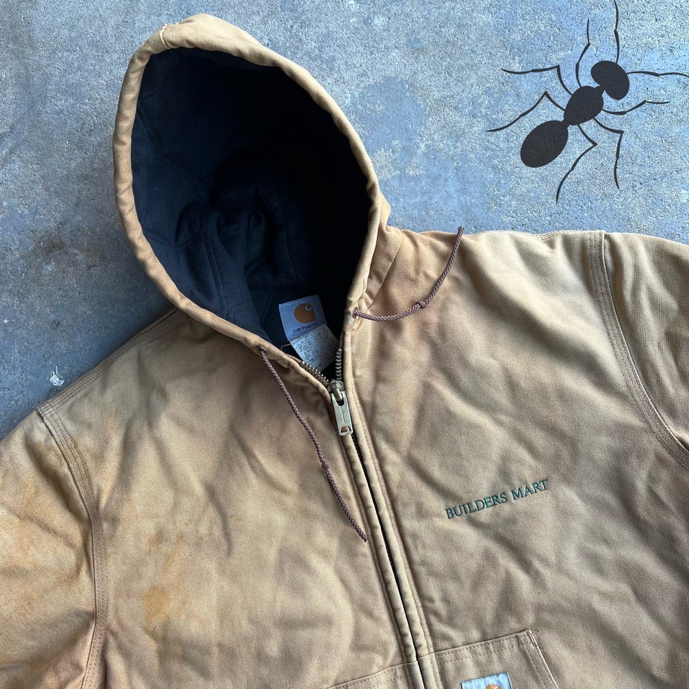 Vintage y2k J04 BRN brown carhartt hooded work wear jacket. Nice one just has some staining on the shoulder/ body region. See all the pics please!! Jacket measures 27.5x28. Please check measurements before purchasing. I do my best to show any flaws in pictures. Quick shipping! Bundles encouraged! @ants_haul on Instagram.