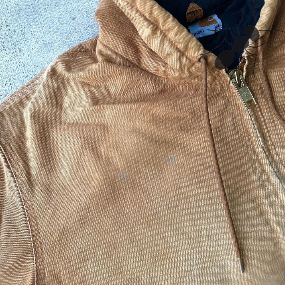 Vintage Y2K Carhartt brown hooded work wear jacket. Nice one! Few marks on chest. Measures 31x28.5. Please check measurements before purchasing. I do my best to show any flaws in pictures. Quick shipping! Bundles encouraged! @ants_haul on Instagram. J0164!!!