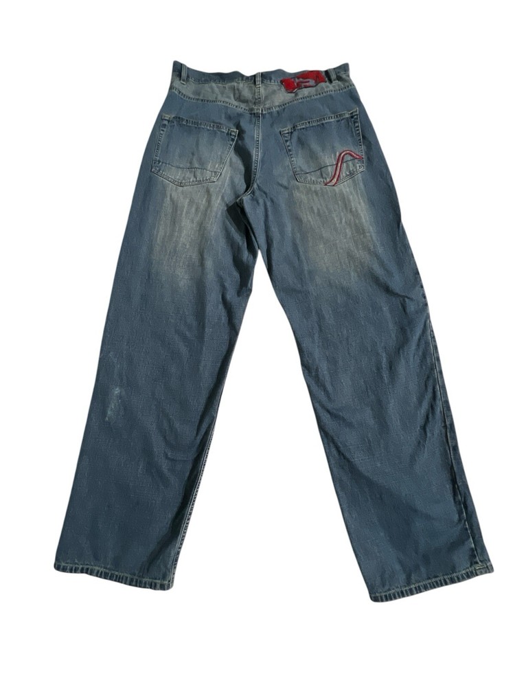 Vintage Y2K Drunkn Munky Jeans Men’s 38x33 Blue Denim Baggy Jnco Style Hip Hop Very good pre-owned condition. No holes, rips or stains; see pictures for measurements. We pre-wrap and inventory right after pictures, therefore no more measurements can be given. ATSBB