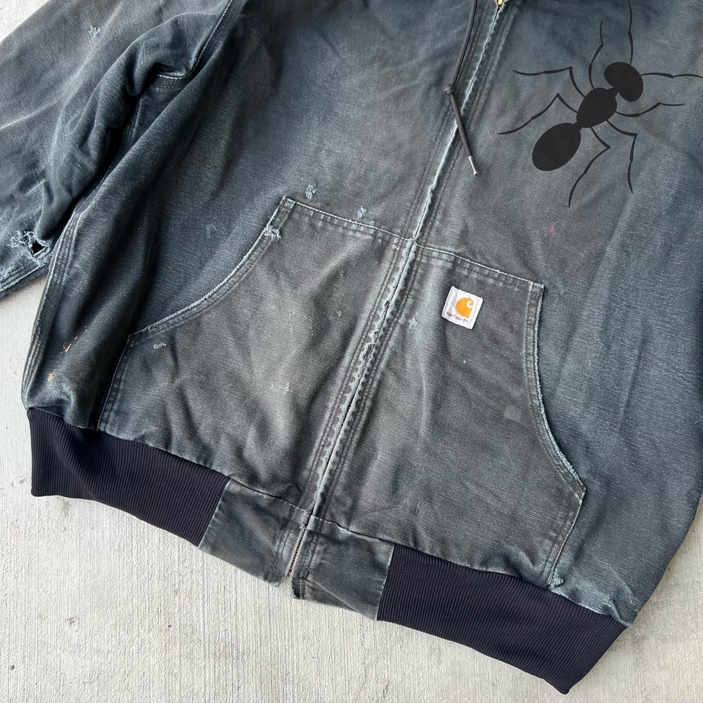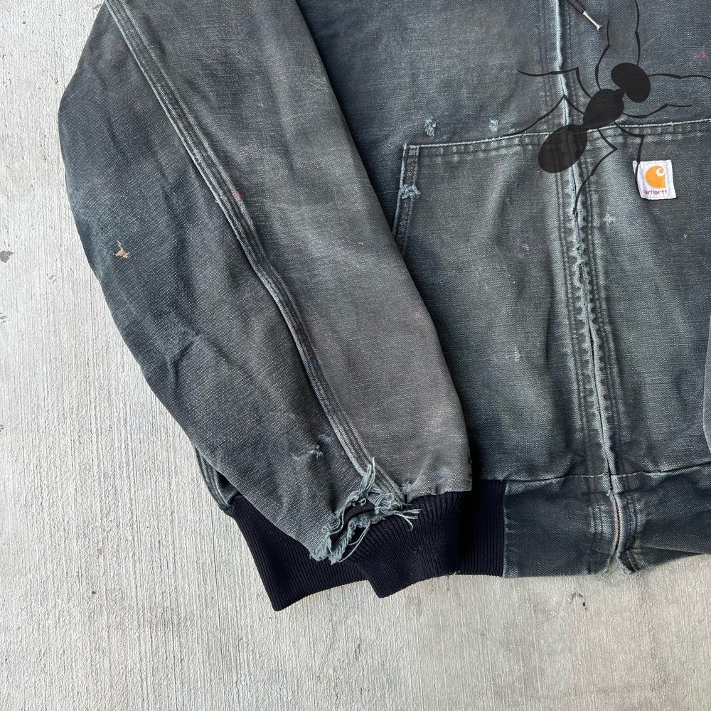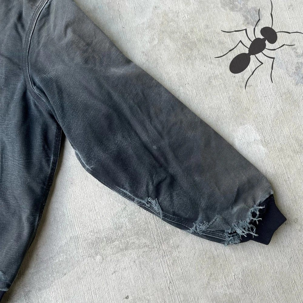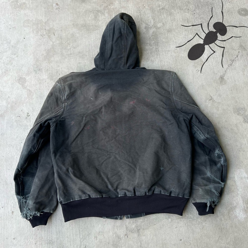 Vintage Y2K FADED black Carhartt hooded active work wear jacket. Awesome wear on this one. Has tears on the sleeves and discoloration throughout just see the pics please! Measures 26x28. Please check measurements before purchasing. I do my best to show any flaws in pictures. Quick shipping! Bundles encouraged! @ants_haul on Instagram. 1A!!!