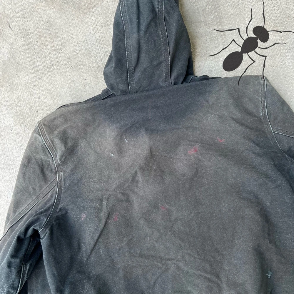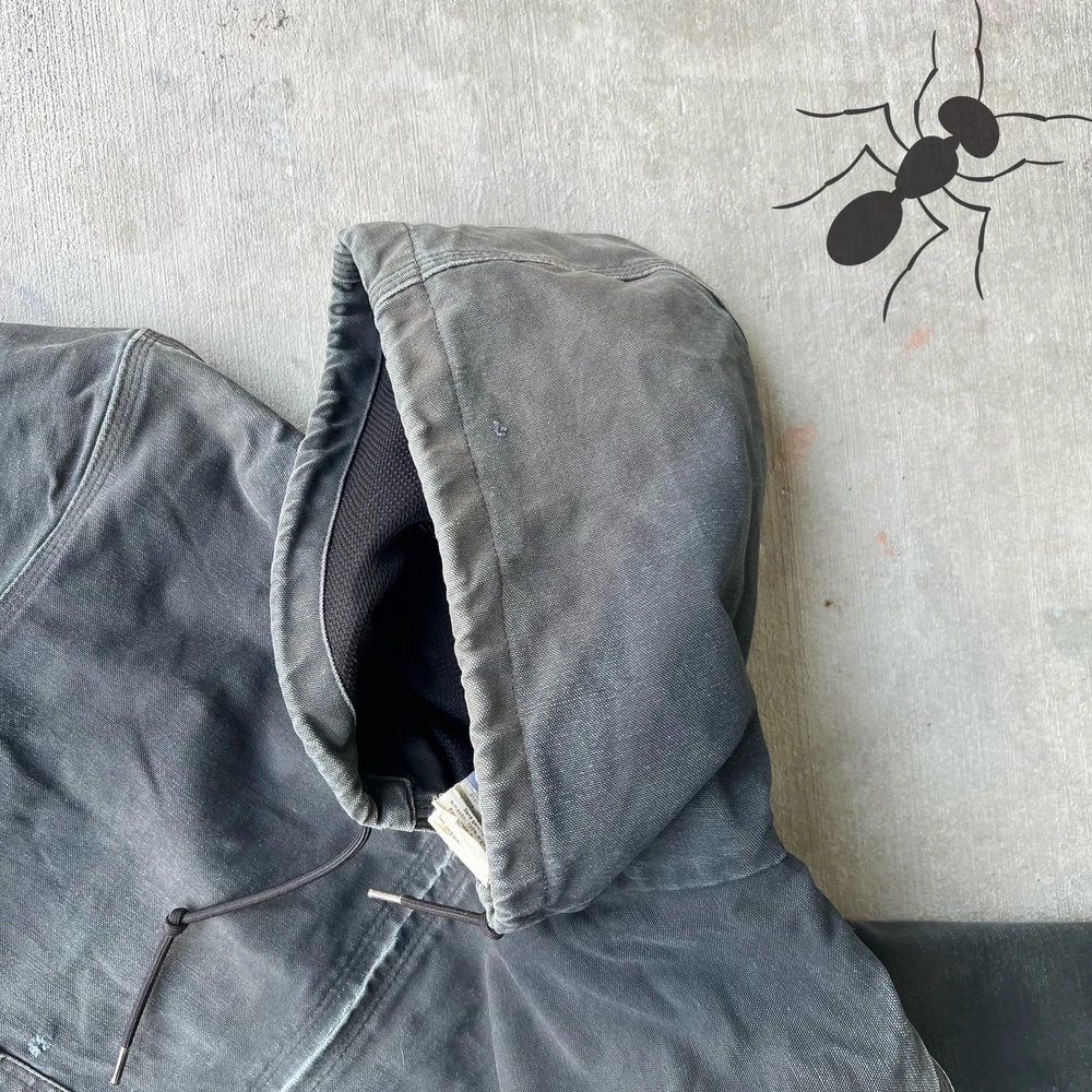 Vintage Y2K Faded Black Carhartt Hooded Work Jacket