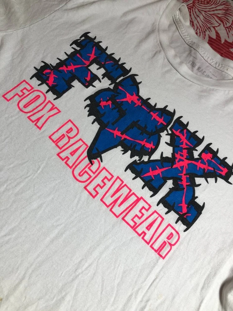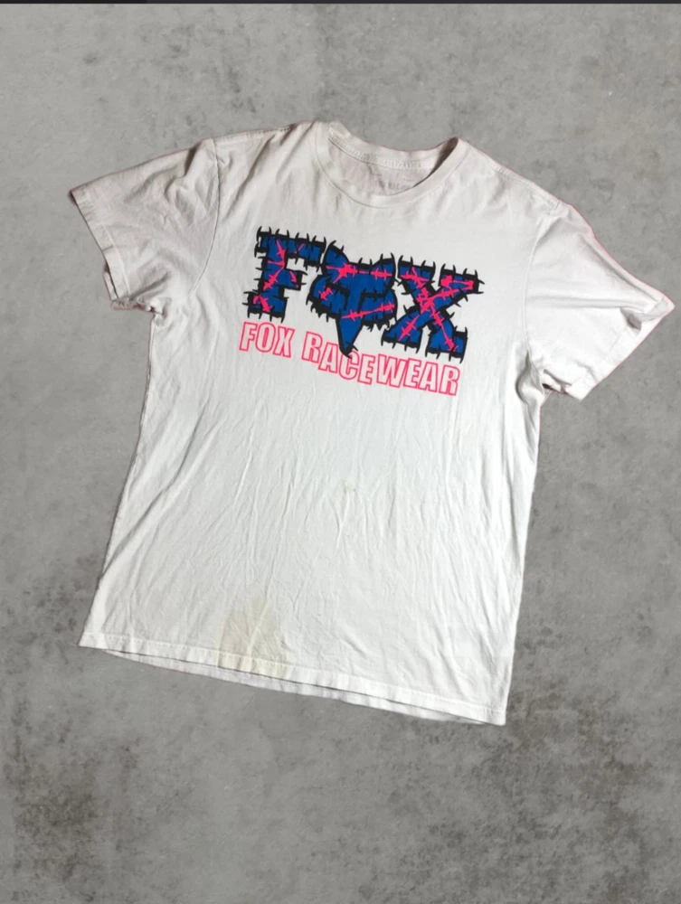 Vintage Y2K Fox Racing Moto Graphic Tee Shirt White Men’s Size L